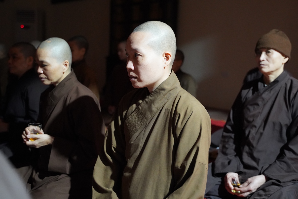 Buổi thiền trà khép lại bằng những bài Thiền Ca đầy an lạc, trong không gian ấm áp tình đạo vị.