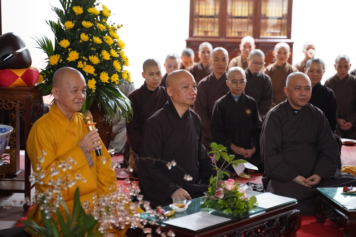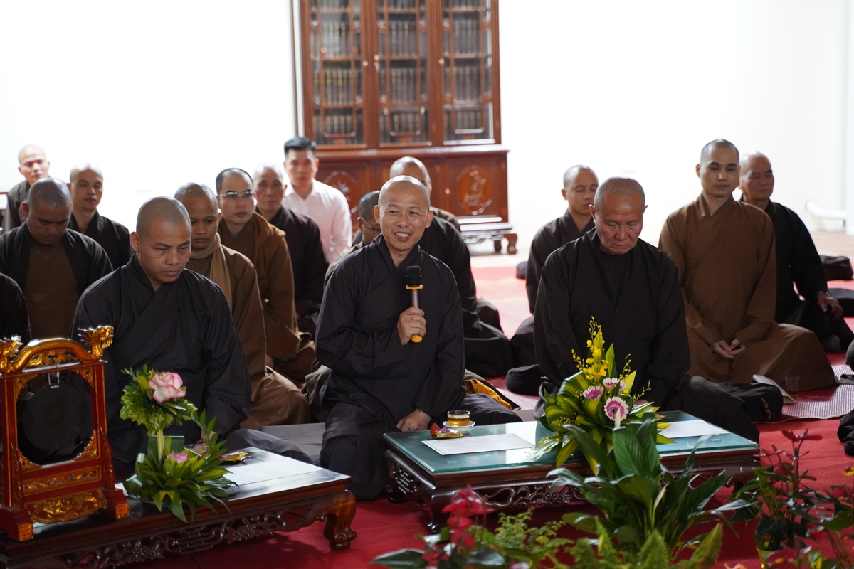Tại đây, Thượng toạ Thích Chiếu Tuệ - Ủy viên HĐTS, Phó trưởng Ban thường trực Ban Hoằng pháp TW đã chia sẻ về kinh nghiệm từ bản thân, là muốn thành tựu mọi Phật sự ngoài tinh thần dấn thân, sự năng nổ, còn phải biết hoà hợp cùng nhân dân và chính quyền địa phương. Đặc biệt khi phát nguyện phụng sự, cần giữ vững niềm tin vào ngôi Tam Bảo, chư Phật chư Bồ Tát sẽ gia hộ cho chúng ta mọi việc đều thành tựu.
