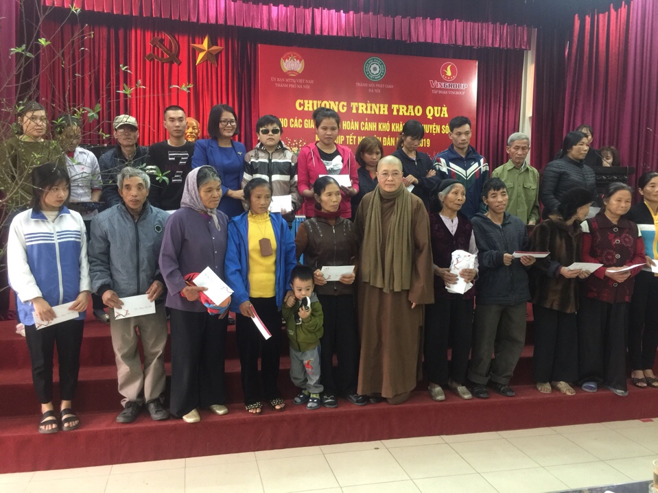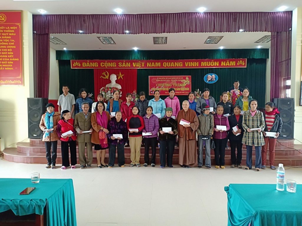 Giữa những ngày giá rét của tháng 12 âm lịch Ni sư Thích Đàm Lan - UVTT HĐTS, Trưởng ban Từ thiện xã hội (TTXH) GHPGVN TP Hà Nội cùng phái đoàn đã trao 900 phần quà (Tập đoàn Vingroup ủng hộ 750 phần và Ban TTXH PG TP Hà Nội 150 phần) cho đồng bào có hoàn cảnh khó khăn tại xã Duy Nghĩa huyện Duy Xuyên tỉnh Quảng Nam; tại các huyện: Sóc Sơn, Thạch Thất, Quốc Oai thuộc TP Hà Nội.