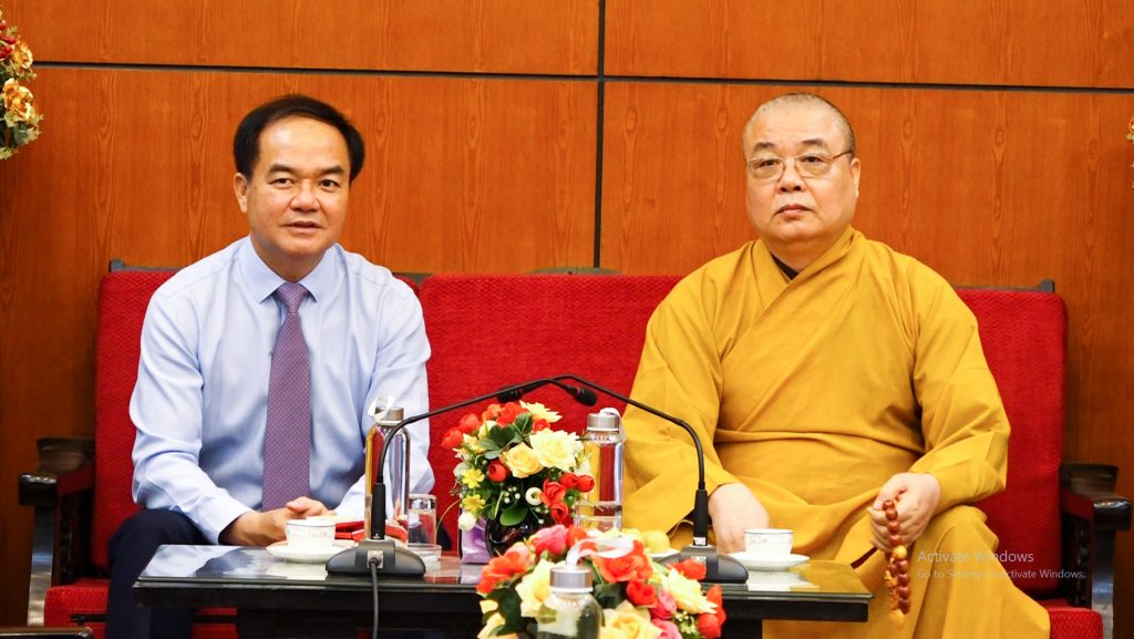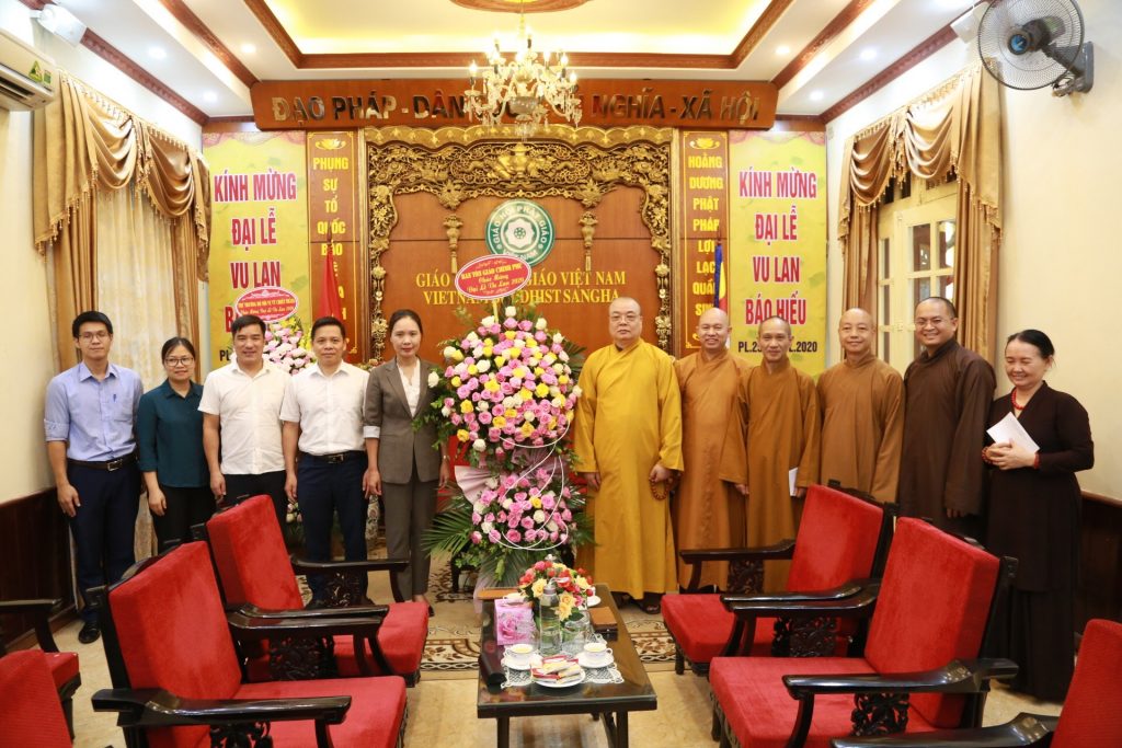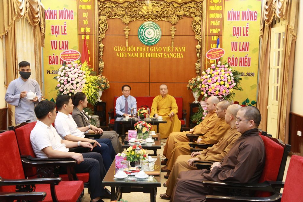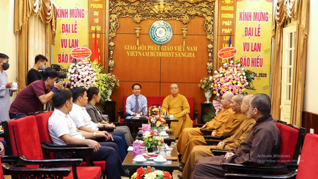 Tại buổi thăm, thay mặt đoàn Ban tôn giáo Chính Phủ, ông Vũ Chiến Thắng đã trao tặng hoa chúc mừng đến chư tôn đức giáo phẩm lãnh đạo GHPGVN và bày tỏ lòng cảm kích đối với Đại lễ Vu Lan báo hiếu - truyền thống Đạo lý của dân tộc Việt Nam.