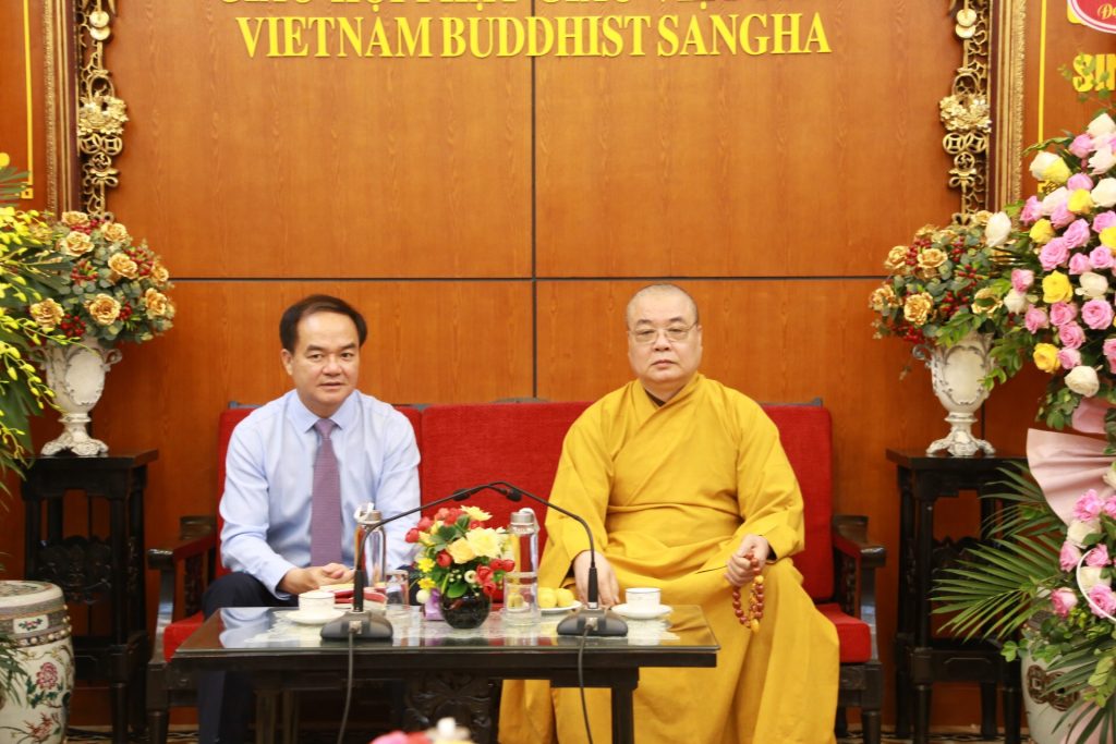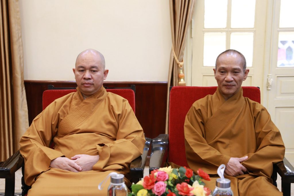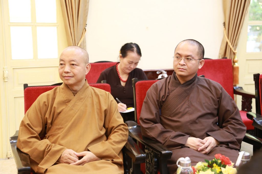 Đón tiếp đoàn có HT. Thích Thanh Nhiễu - Phó chủ tịch Thường trực HĐTS GHPGVN; TT. Thích Đức Thiện - Phó chủ tịch, Tổng thư ký HĐTS, Trưởng ban Phật giáo Quốc tế TƯ GHPGVN; HT.Thích Thanh Điện - Phó tổng Thư ký, Chánh Văn phòng 1 TƯ; TT. Thích Thanh Huân - Uỷ viên thư ký HĐTS, Phó chánh Văn phòng 1 TƯ; ĐĐ. Thích Nguyên Chính - Uỷ viên HĐTS, Phó chánh Văn phòng 1 TƯ.