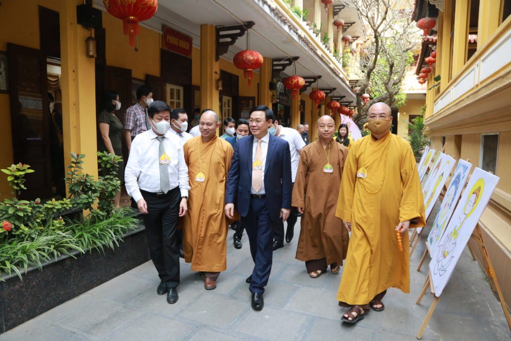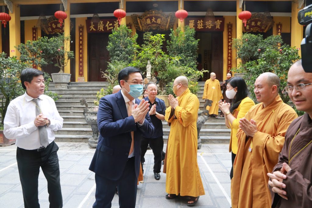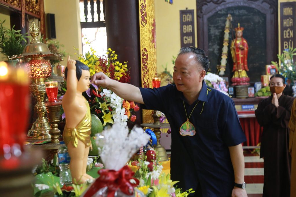 Nhân dịp này, ông Vương Đình Huệ cùng phái đoàn đã thực hiện nghi thức tắm Phật, nguyện cầu thế giới an lành, dịch bệnh được tiêu tan, qua đó thể hiện tinh thần hòa hợp giữa Đảng và Nhà nước với Giáo Hội Phật Giáo Việt Nam.