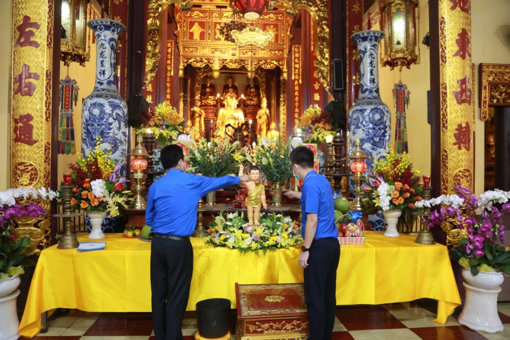 Đáp lời, HT. Thích Thanh Nhiễu đã trân trọng gửi lời cảm ơn đến lãnh đạo HLHTNVN. Hòa thượng đánh giá cao tinh thần phụng sự của thanh niên, Hội sinh viên Việt Nam trong cả ba kỳ Đại lễ Vesak tại Việt Nam cùng các hoạt động thiện nguyện cứu trợ trong đợt dịch bệnh vừa qua, mang ý nghĩa to lớn, góp phần vào công tác an sinh xã hội và phát triển đất nước. Nhân dịp Phật đản, lãnh đạo HLHTNVN cùng chư tôn đức lãnh đạo giáo hội thực hiện nghi thức tắm Phật để cầu mong thế giới được hòa bình, an lạc.