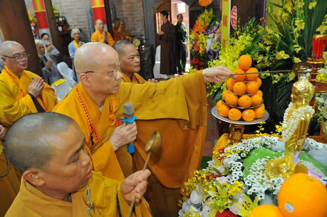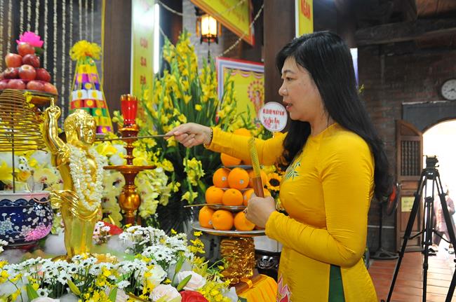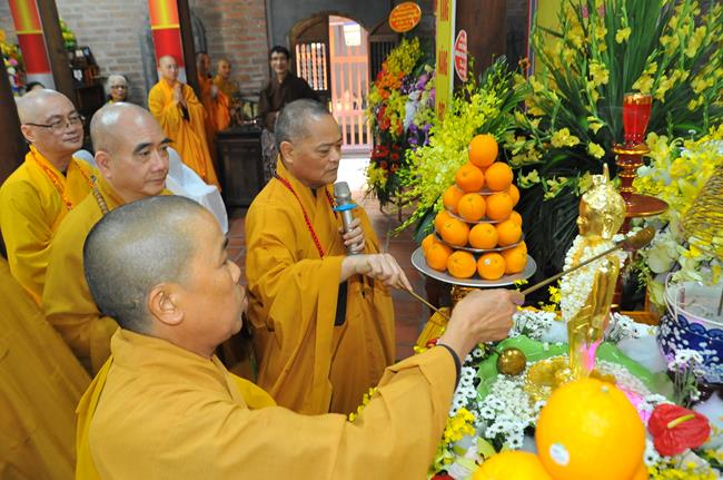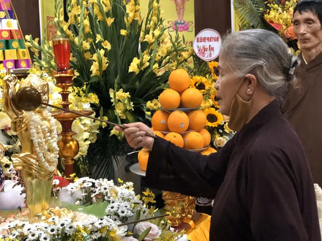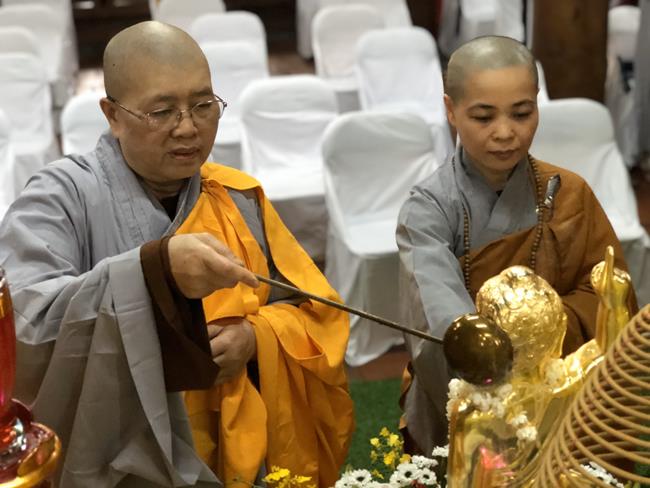Trong khói hương quyện tỏa, chư Tôn đức Tăng Ni cùng toàn thể đại chúng đã trang nghiêm thực hiện nghi thức niêm hương bạch Phật và làm lễ tắm Phật, khép lại buổi lễ thành tựu viên mãn và tràn đầy hỷ lạc mừng ngày Đức Thế Tôn đản sinh.