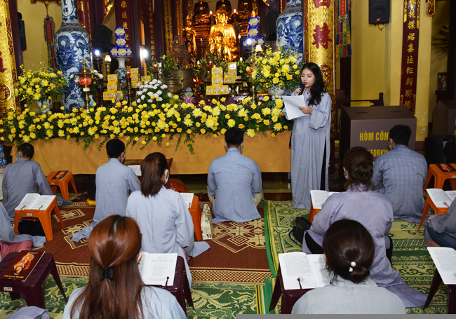 Cư sĩ Diệu Nhân - Nguyễn Thị Xuân Loan - Ủy viên HĐTS TƯ GHPGVN cùng ban chủ nhiệm CLB đã hướng dẫn chương trình và nói ý nghĩa mùa Vu lan Báo hiếu, đó là một trong các ngày đại lễ quan trọng của đạo Phật để tưởng nhớ, báo ân, báo hiếu cha mẹ tổ tiên, cửu huyền thất tổ. Với truyền thống ý nghĩa đầy nhân văn, lễ Vu Lan là dịp để những người con bày tỏ lòng hiếu thảo, đền đáp công ơn sinh thành dưỡng dục của cha mẹ, ông bà và thành kính tưởng nhớ tổ tiên cửu huyền thất tổ, phát huy truyền thống văn hóa đạo đức tốt đẹp của dân tộc Việt Nam.
