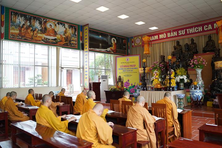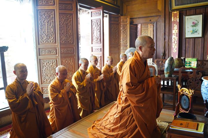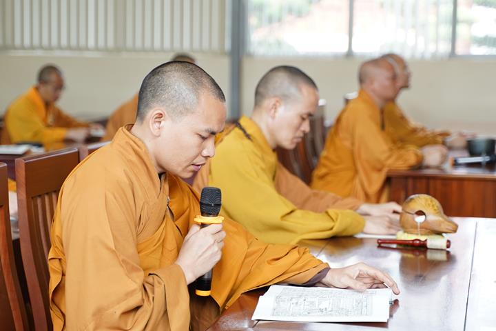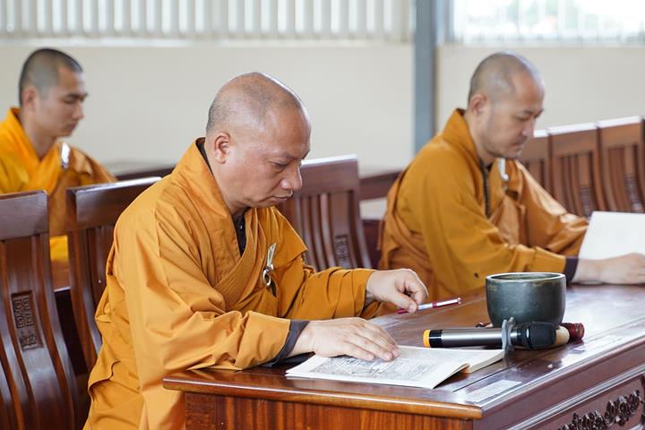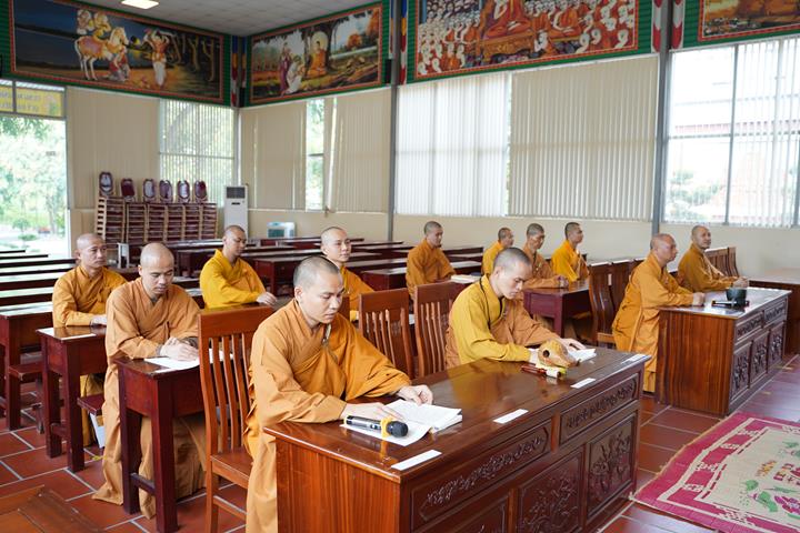 Tại buổi lễ, chư Tăng được lắng nghe HT. Thích Bảo Nghiêm - Trưởng Ban hoằng pháp Trung ương, Trưởng Ban Trị sự GHPGVN TP. Hà Nội quang lâm giảng dạy về “tựa sách Vân Thê Cộng Trụ Quy Ước, dạy về phép tắc quy ước của tùng lâm”.