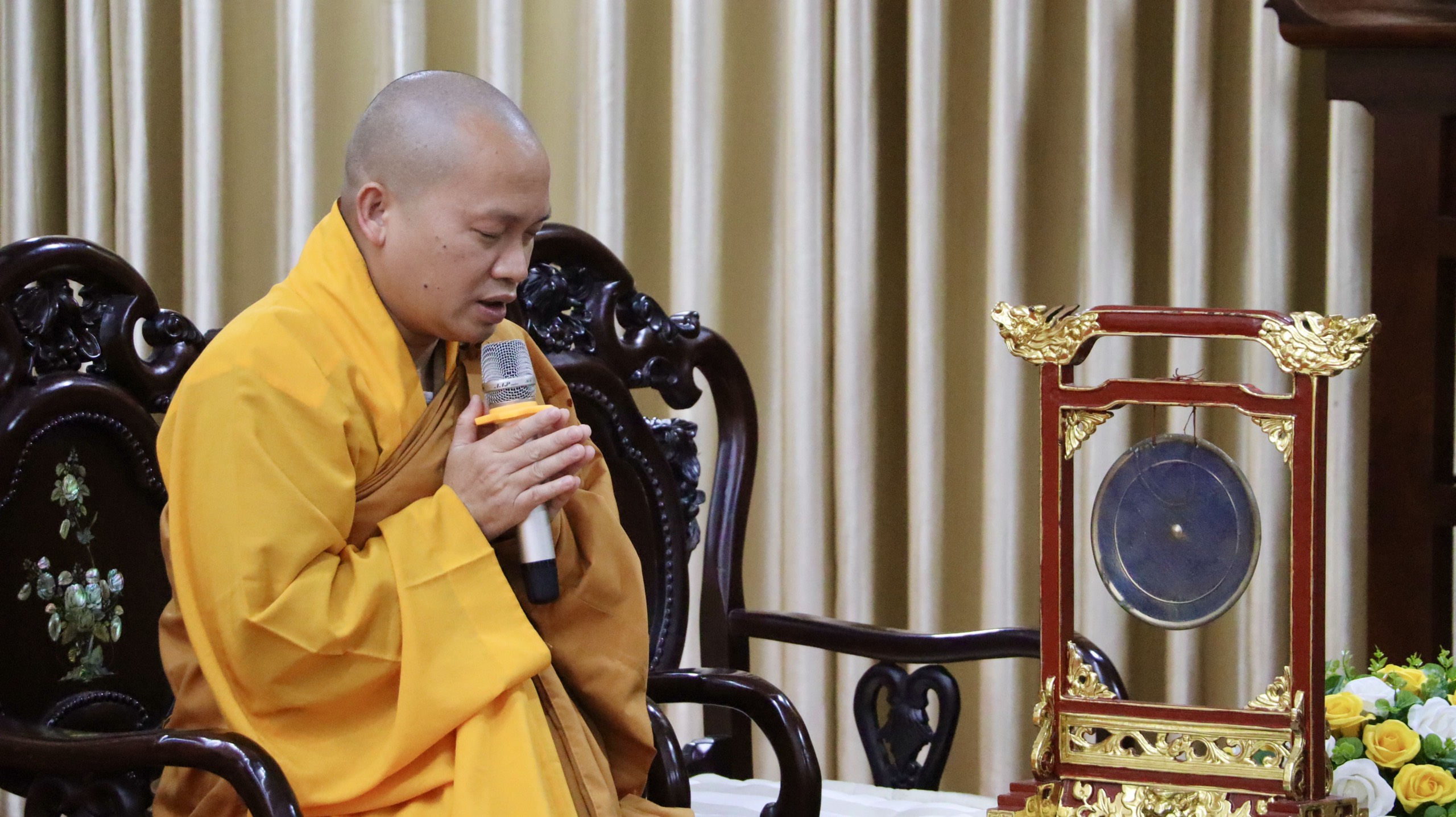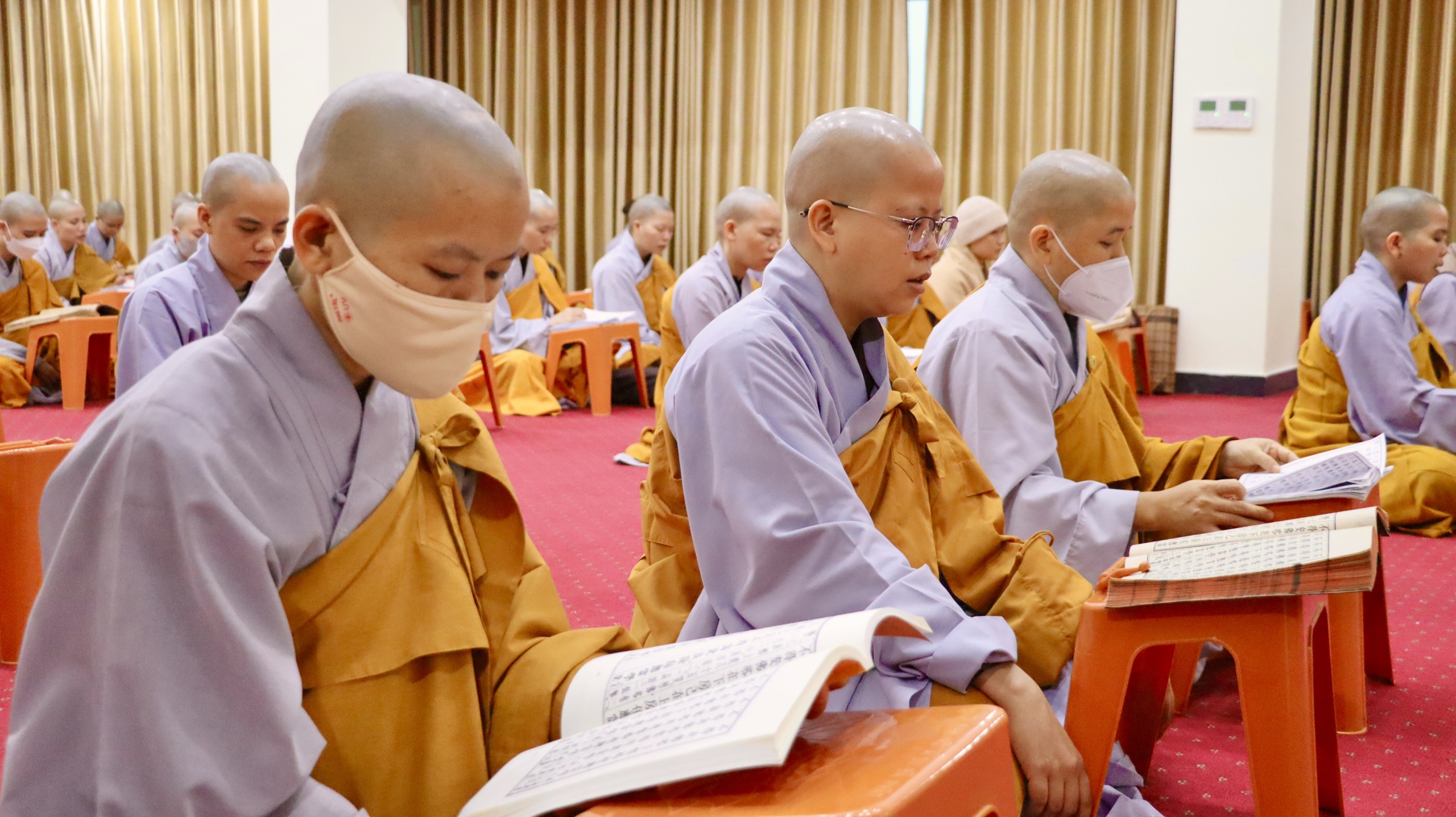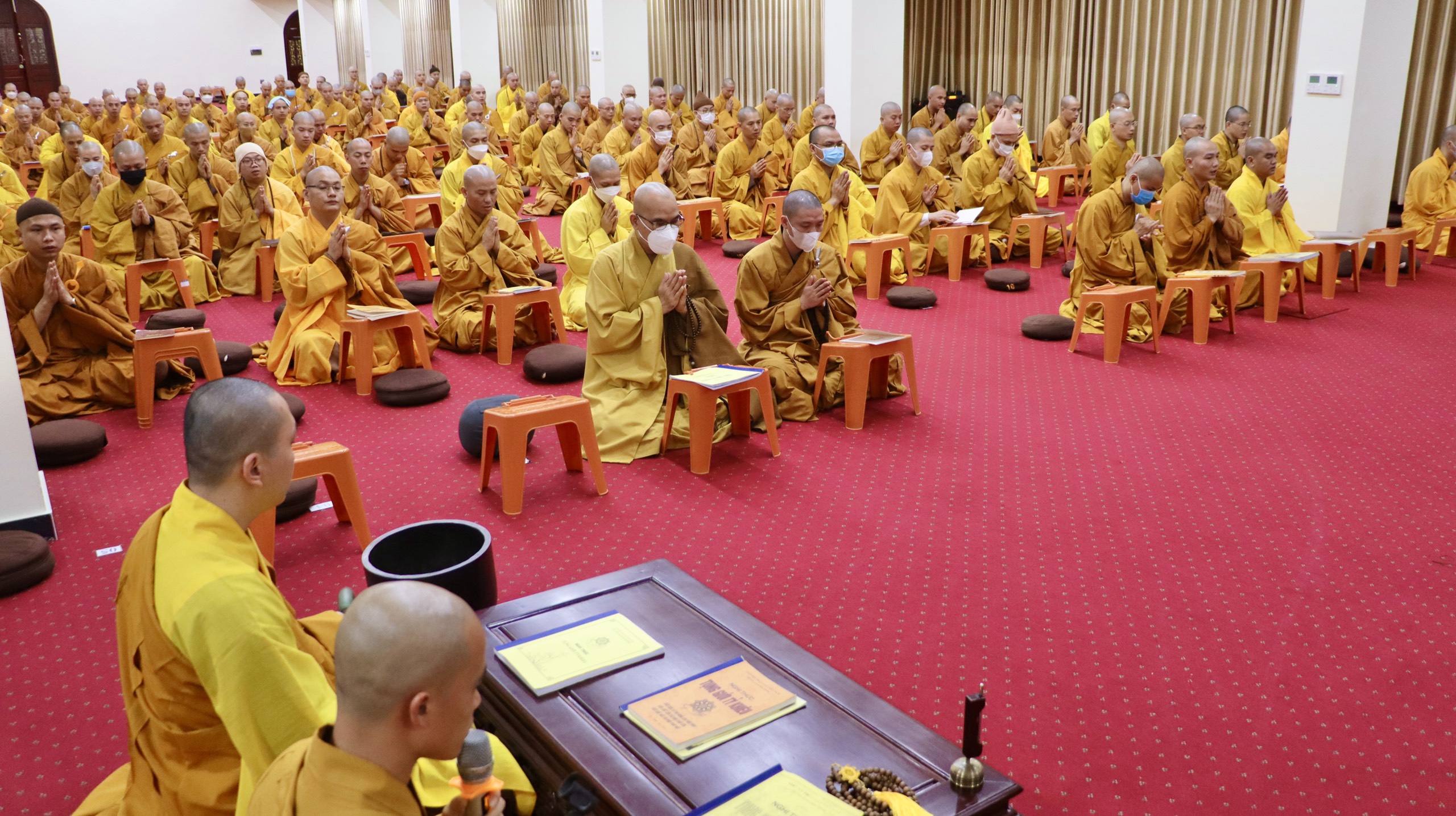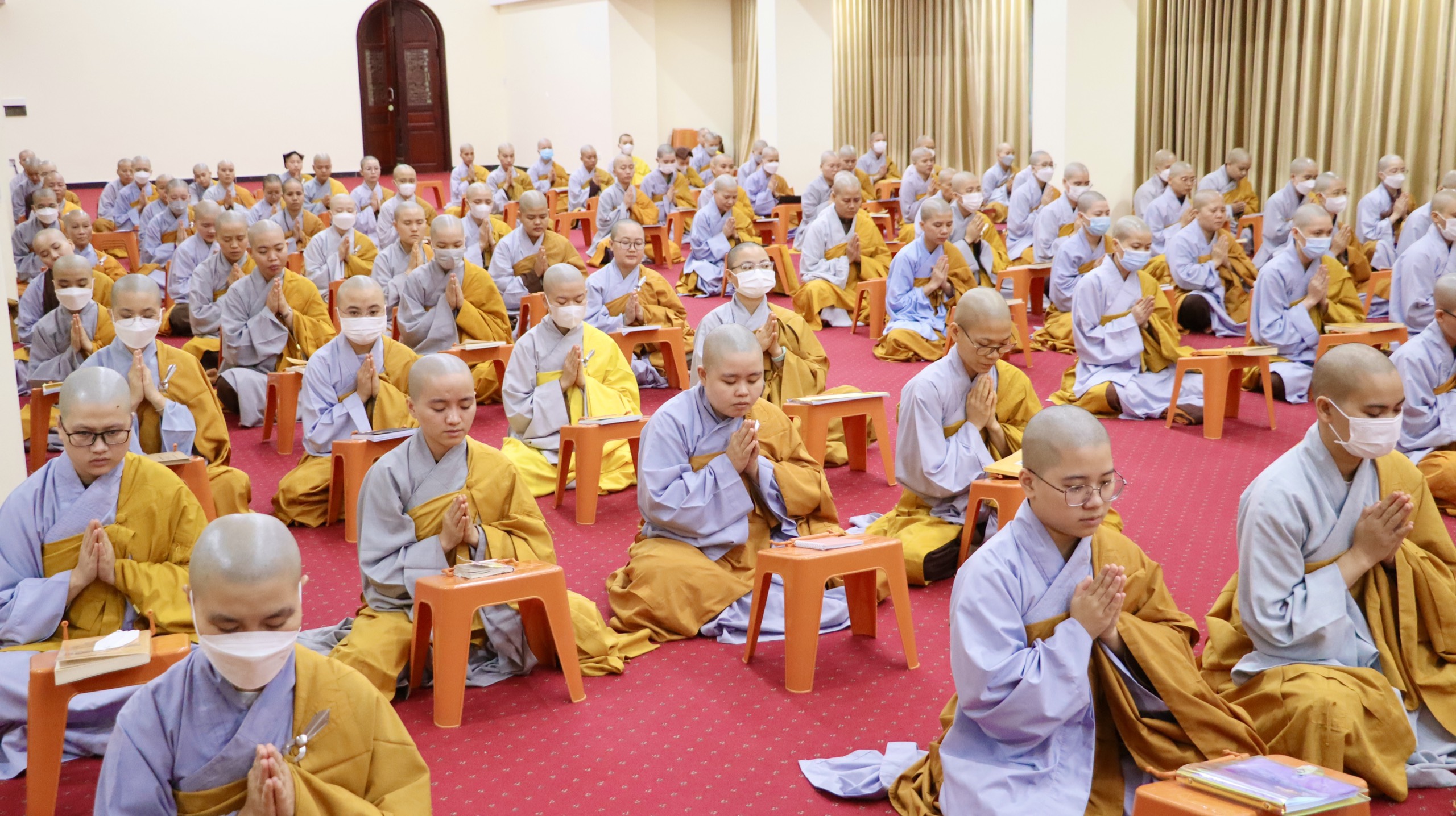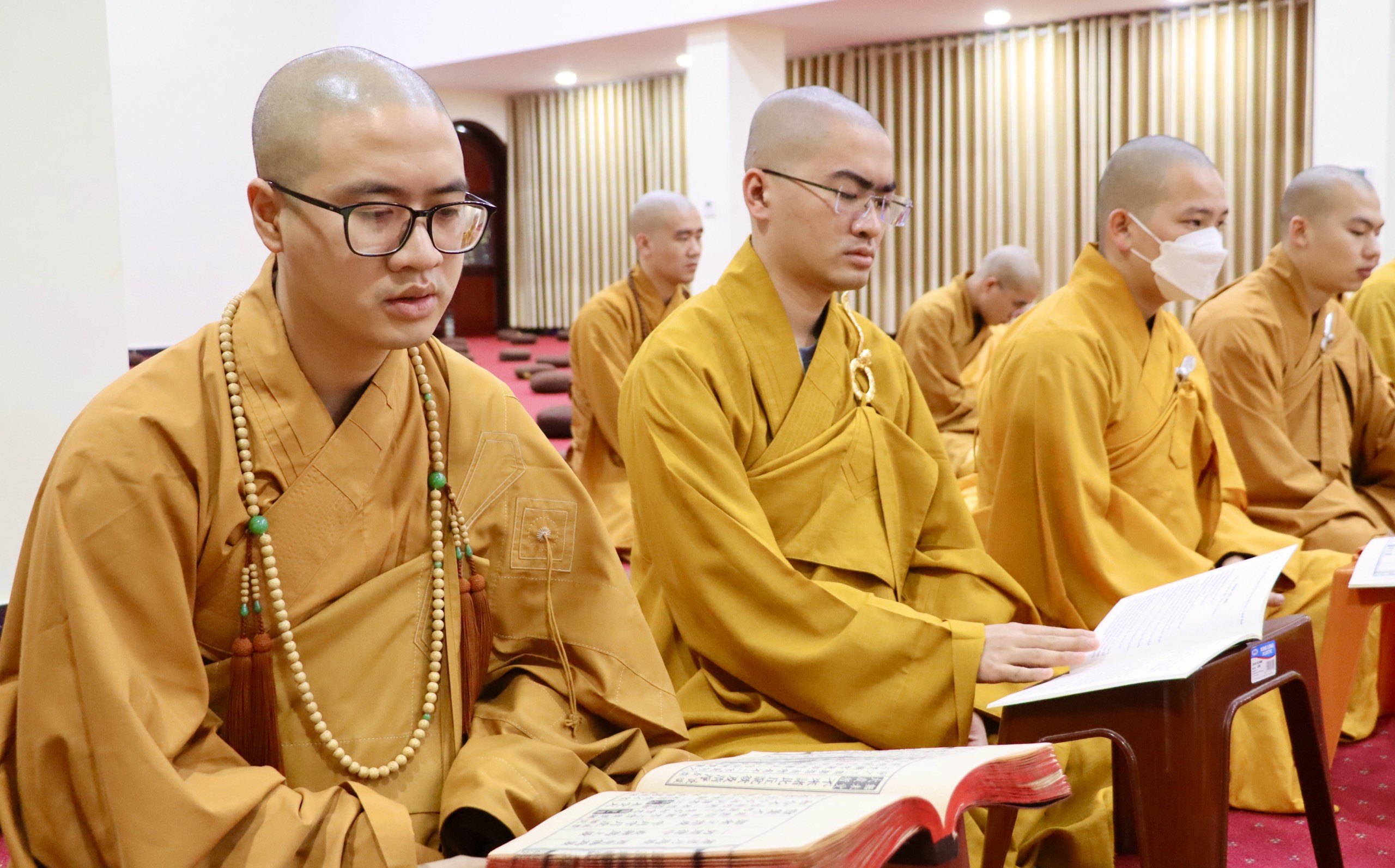 Đại đức Thích Đạo Mẫn, Chánh Văn phòng Học viện cùng Ban Quản chúng và toàn thể Tăng Ni sinh Học viện tham dự đông đủ.