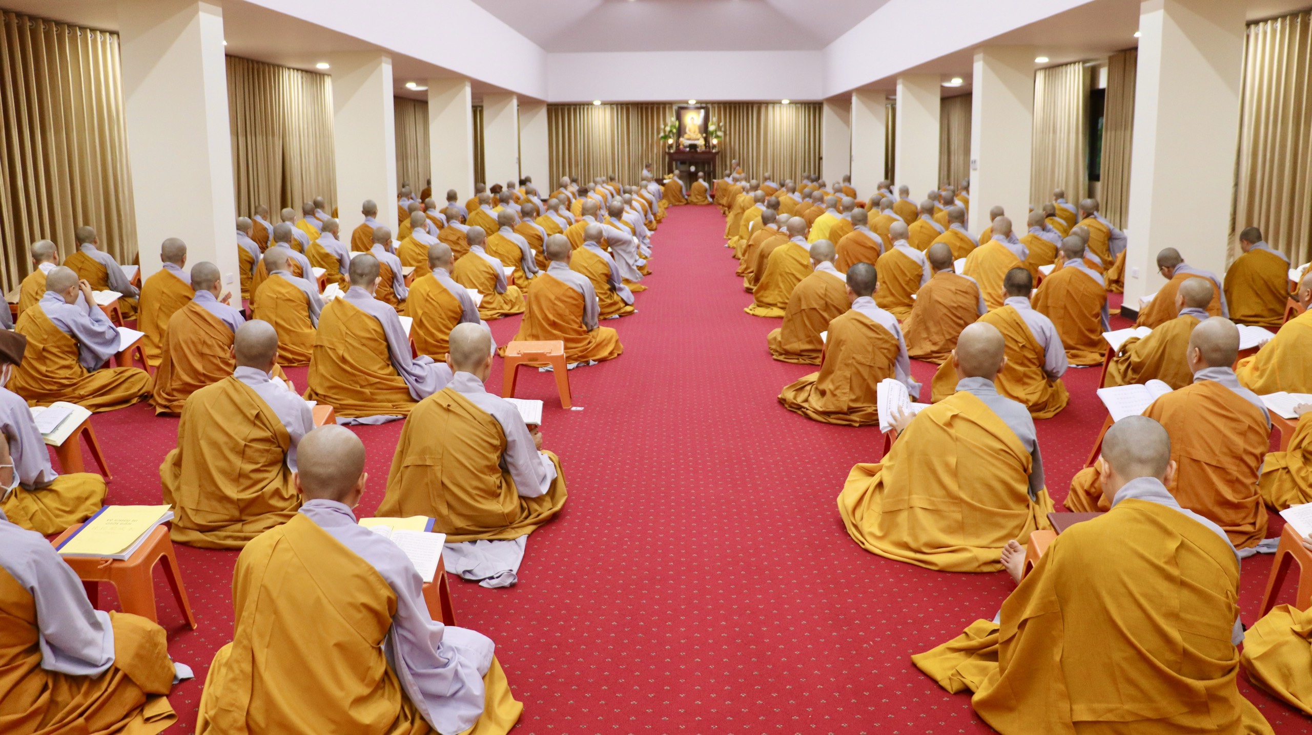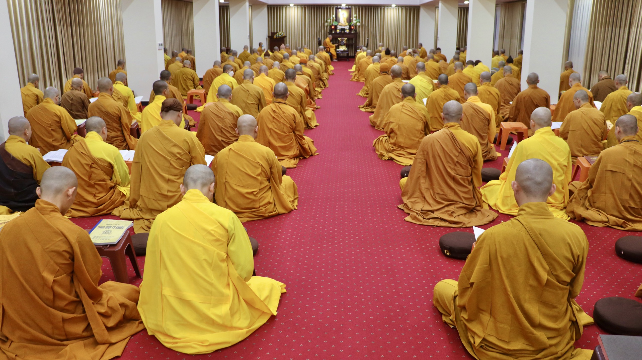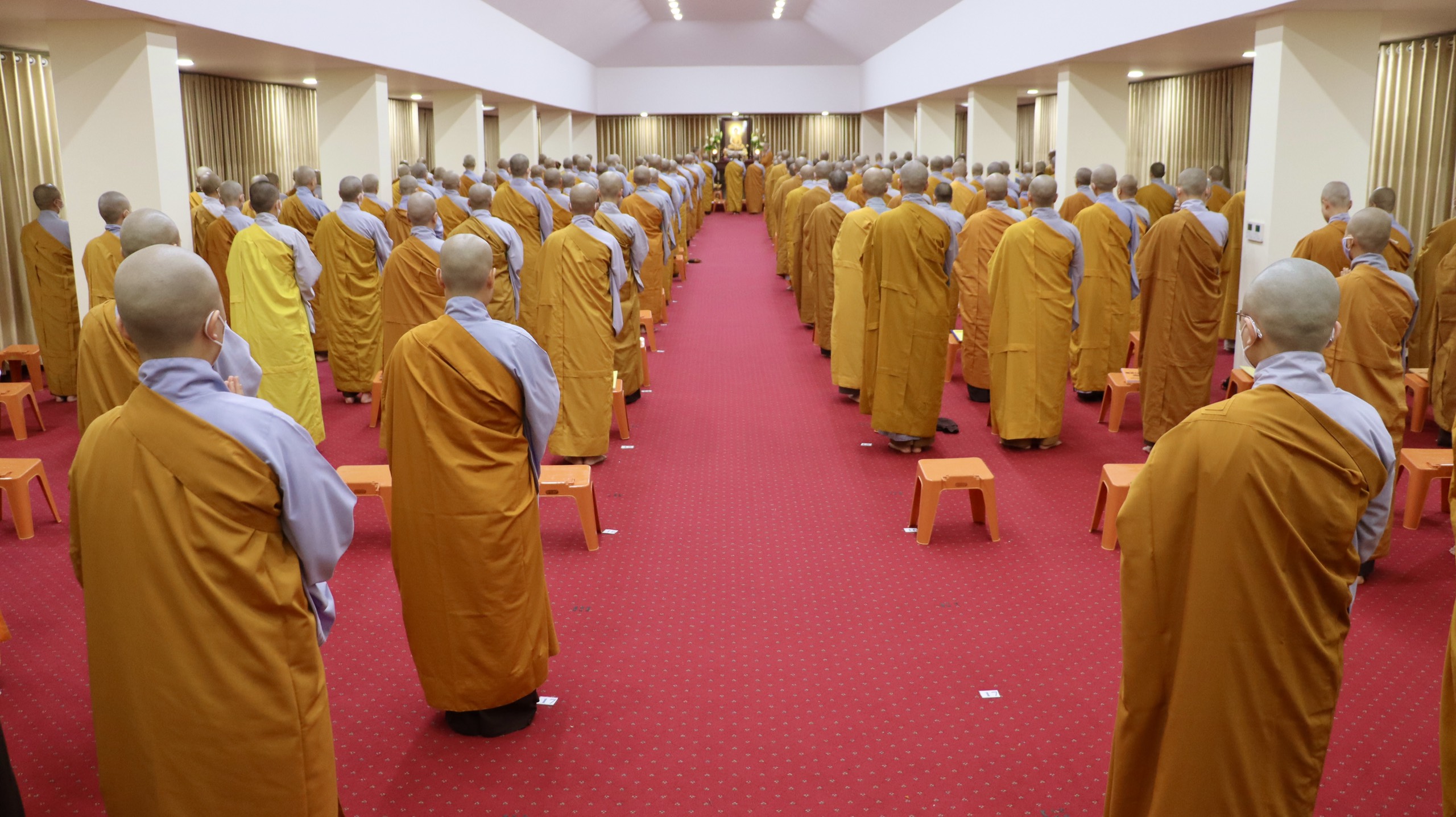 Chư Tăng tuần tự theo hạ lạp trang nghiêm tự lập tại Thiền đường Tòa Viên Quang. Đại chúng đã thành kính niêm hương bạch Phật, đỉnh lễ Tam bảo và phát lồ sám hối.