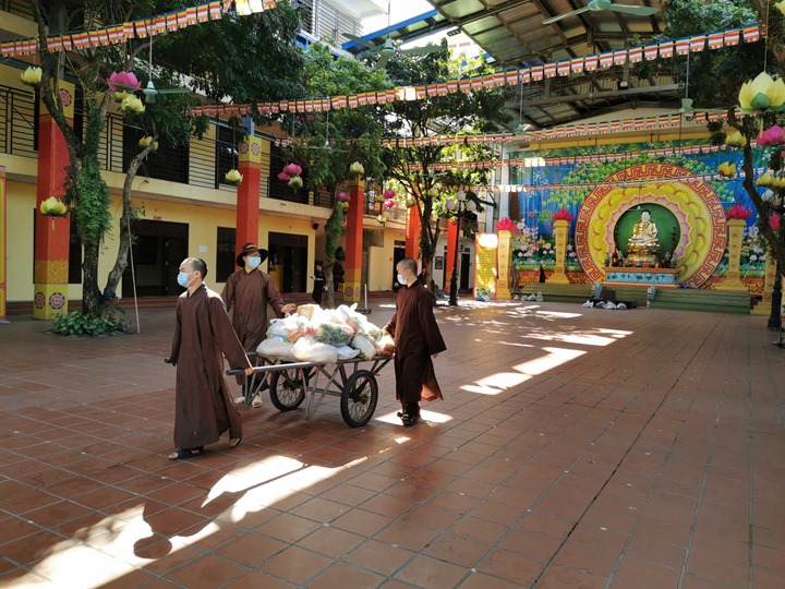 Thấu hiểu nỗi khó khăn vất vả của người dân, Hoà thượng Thích Bảo Nghiêm - Phó chủ tịch HĐTS, Trưởng Ban hoằng pháp TƯ GHPGVN, trụ trì chùa Bằng (số 63 phố Bằng Liệt, phường Hoàng Liệt, quận Hoàng Mai, Hà Nội) cùng chư Tăng bản tự trong những ngày này đã liên lạc với từng trường hợp cần giúp đỡ xung quanh Chùa, trong phạm vi địa bàn phường Thanh Liệt và phường Hoàng Liệt qua ứng dụng Zalo, để gửi tặng họ những phần quà cứu trợ. Mỗi phần bao gồm 10kg gạo, miến, dầu ăn, xì dầu, bánh kẹo, rau củ, sữa tươi và khẩu trang y tế.