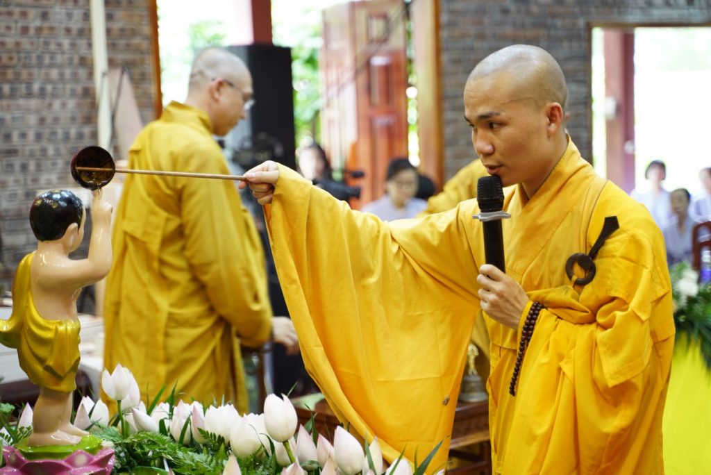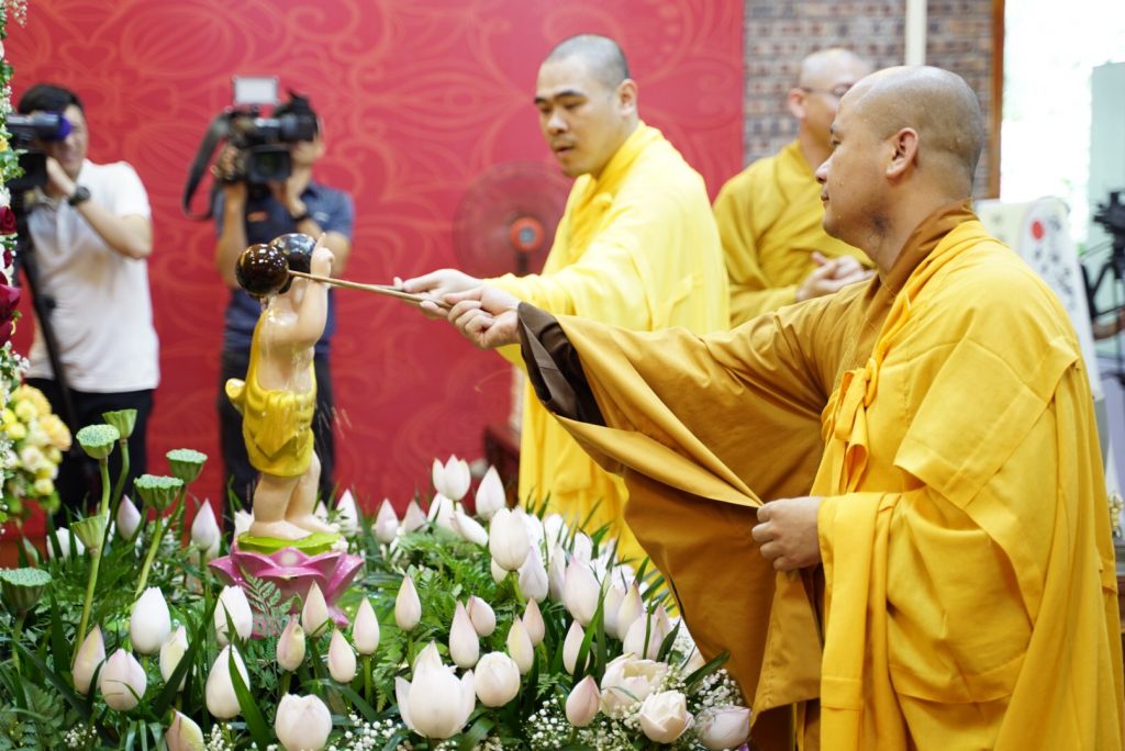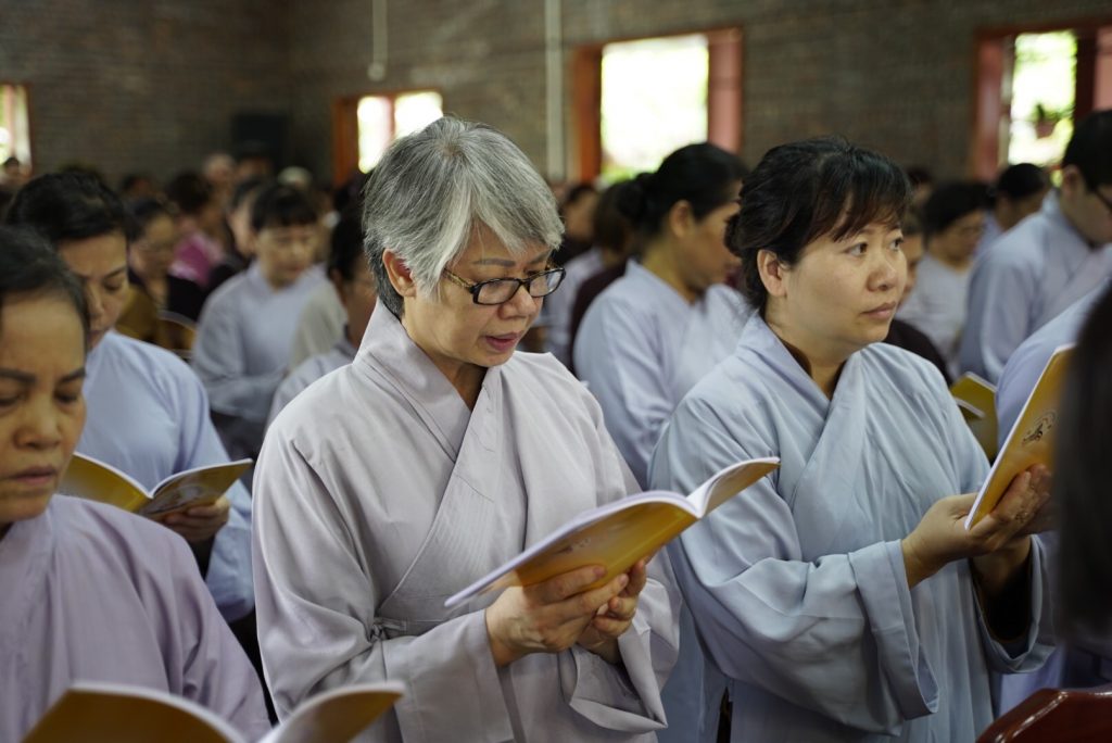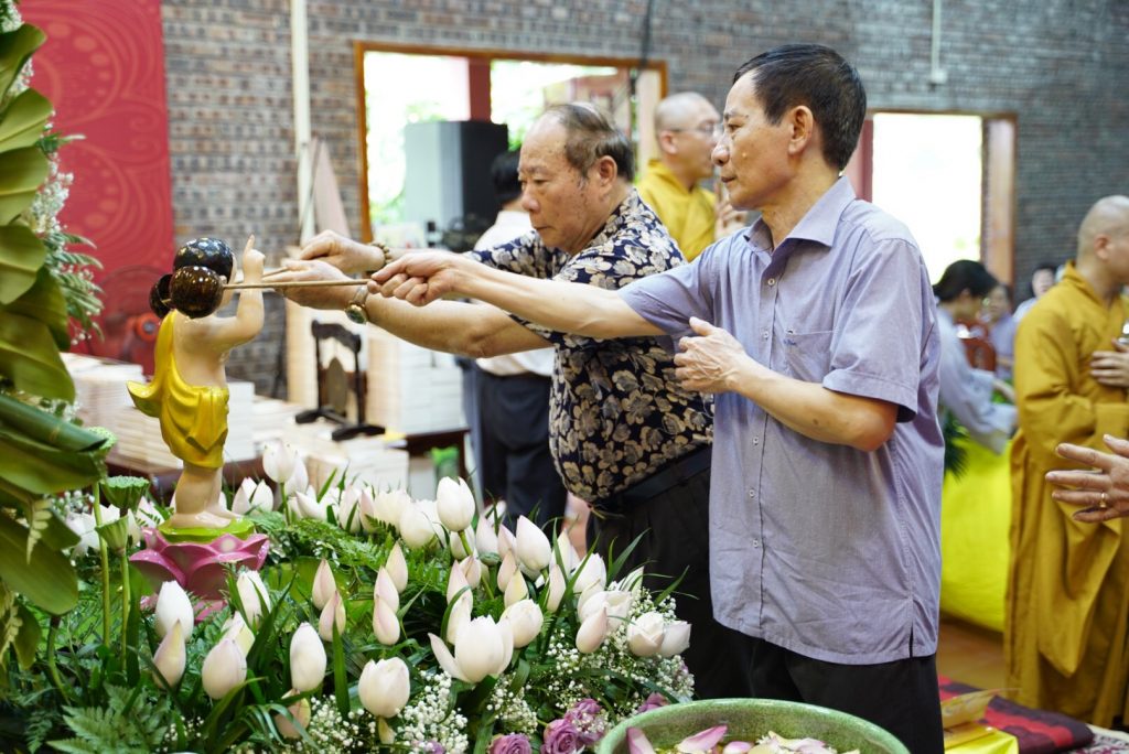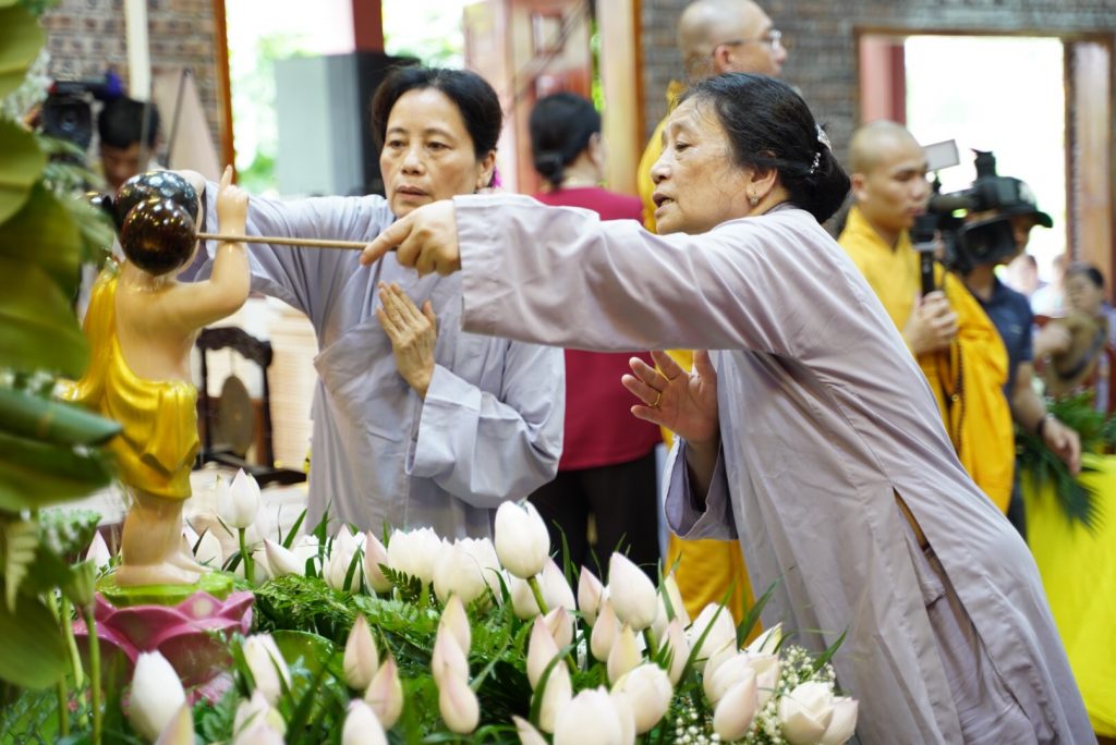 Cuối cùng, chư Tôn đức Tăng, Ni cùng toàn thể đạo tràng đọc tụng bài sám khánh đản trước khi làm nghi thức tắm Phật trong tiếng niệm Phật ngân vang, nhất tâm một lòng thành kính hướng về Đấng Từ Phụ.