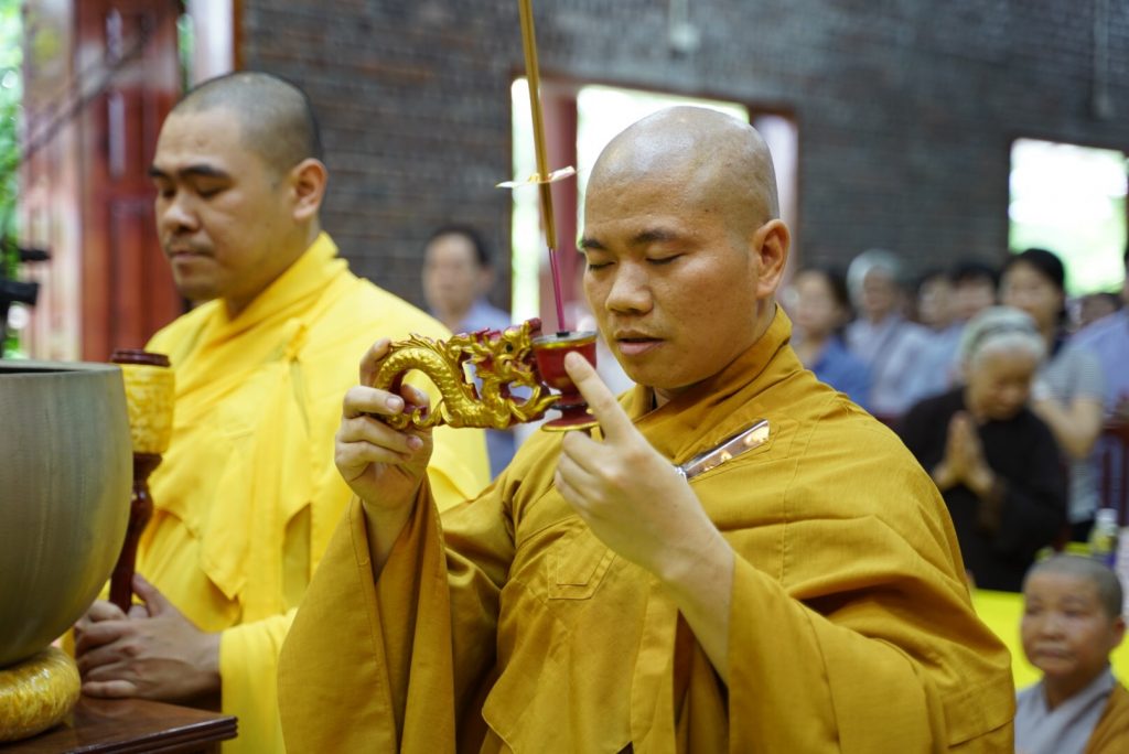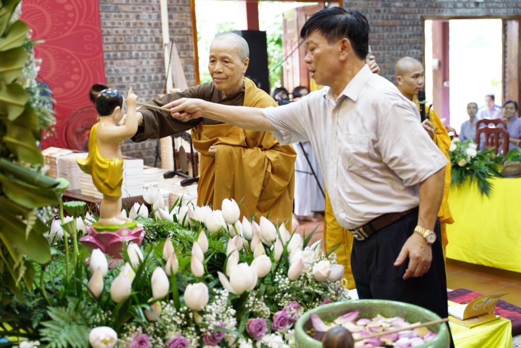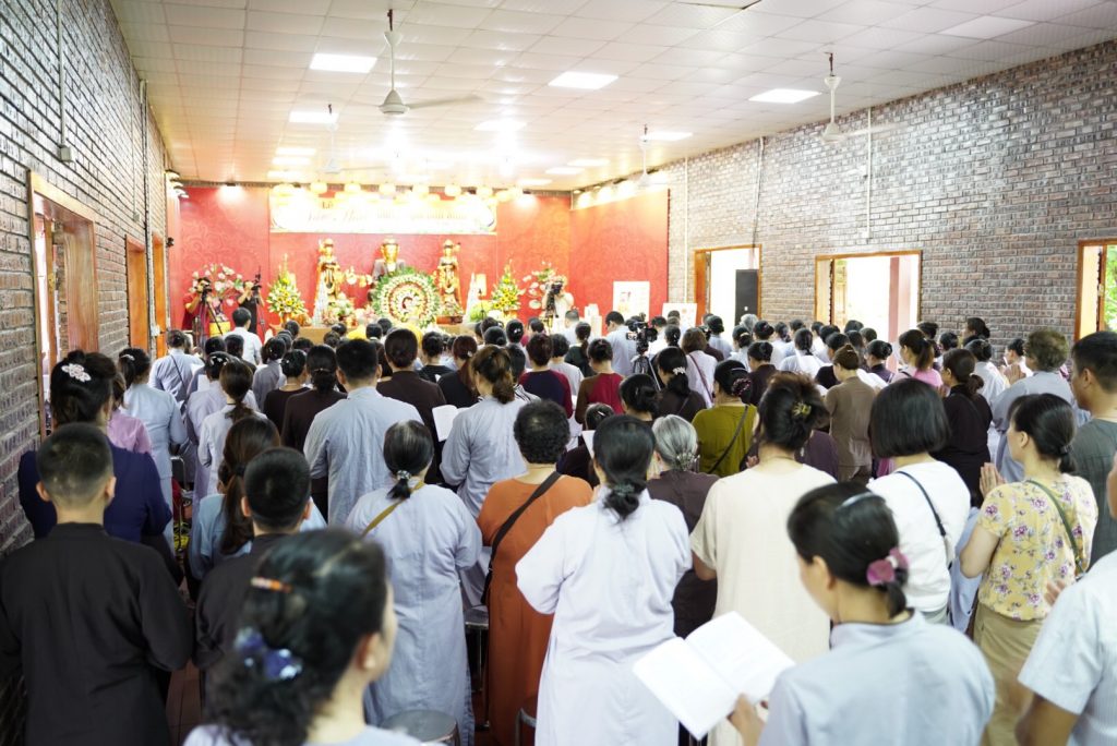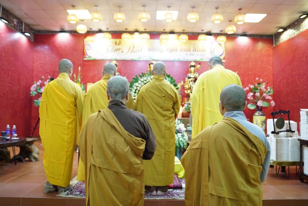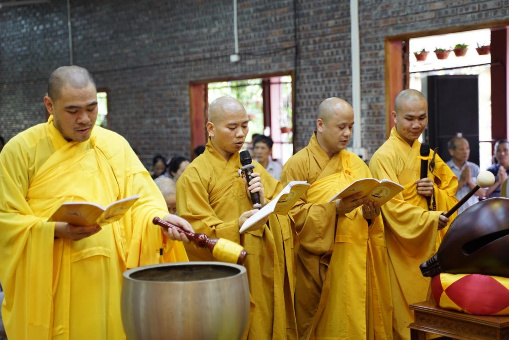 Cuối cùng, chư Tôn đức Tăng, Ni cùng toàn thể đạo tràng đọc tụng bài sám khánh đản trước khi làm nghi thức tắm Phật trong tiếng niệm Phật ngân vang, nhất tâm một lòng thành kính hướng về Đấng Từ Phụ.