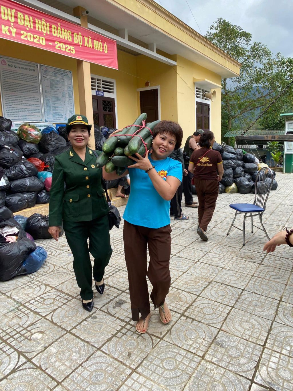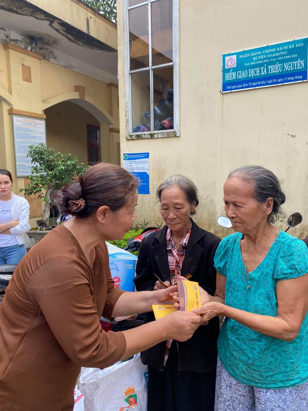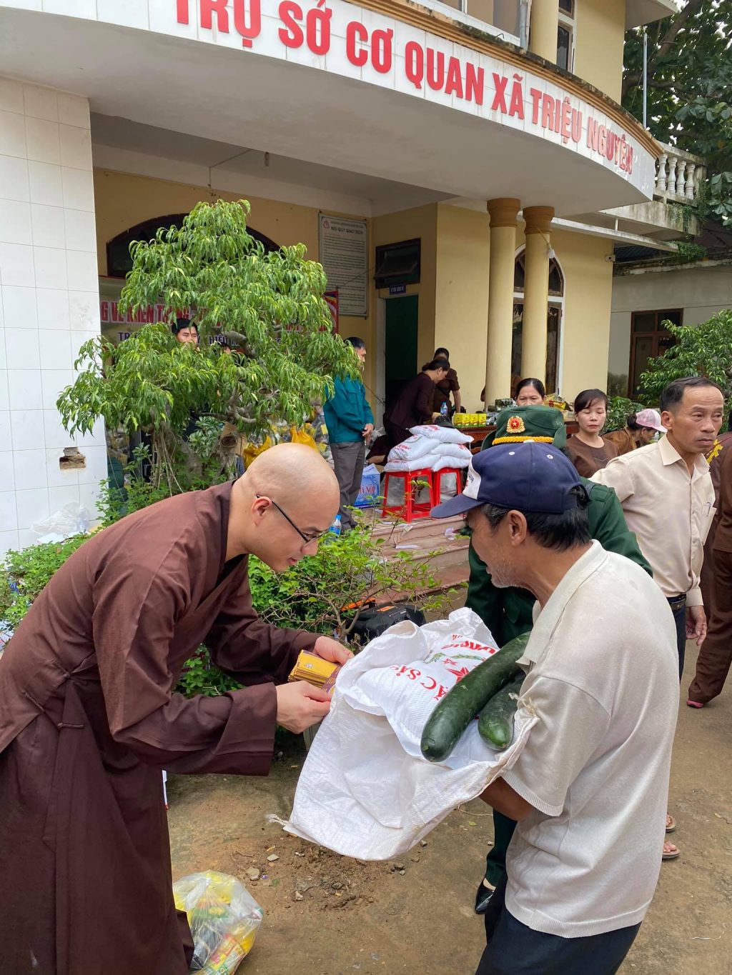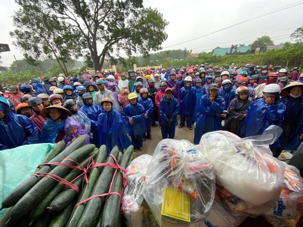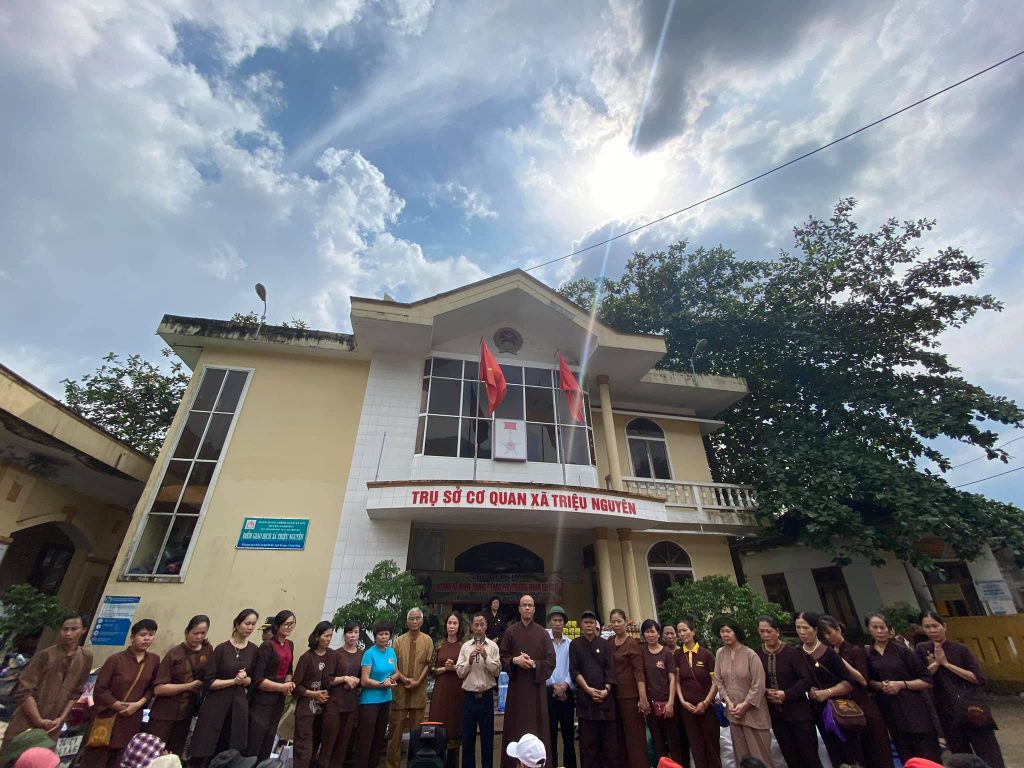 Bà con xã Triệu Ái, huyện Triệu Phong, tỉnh Quảng Trị tập trung rất đông chuẩn bị nhận quà từ đạo tràng chùa Tân Hải