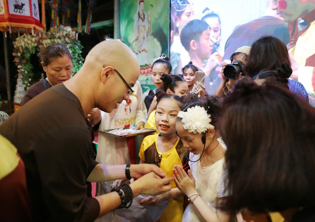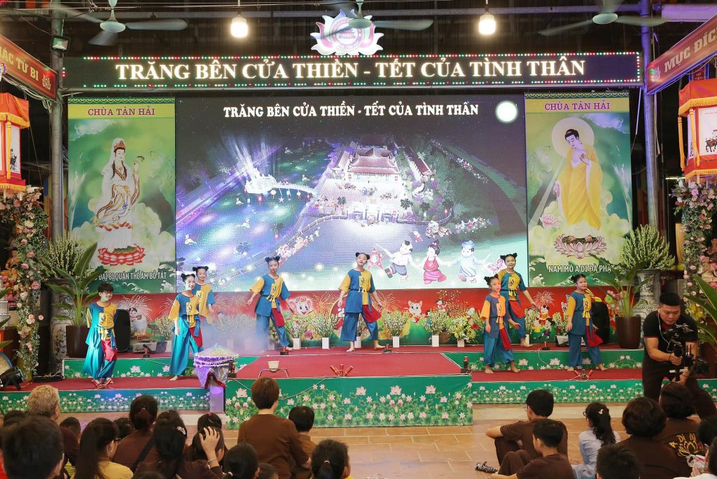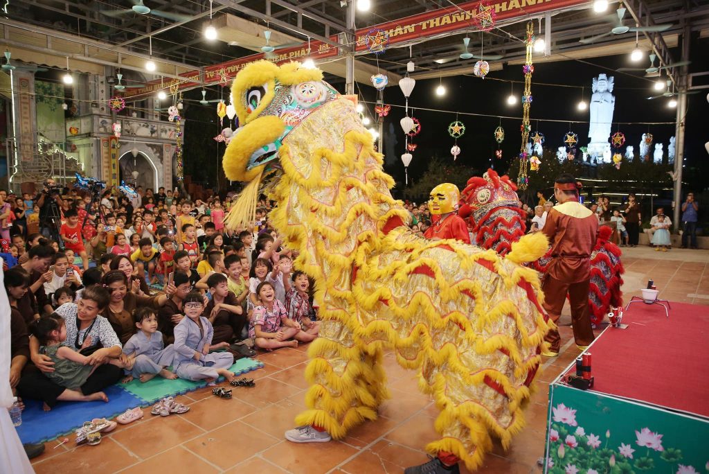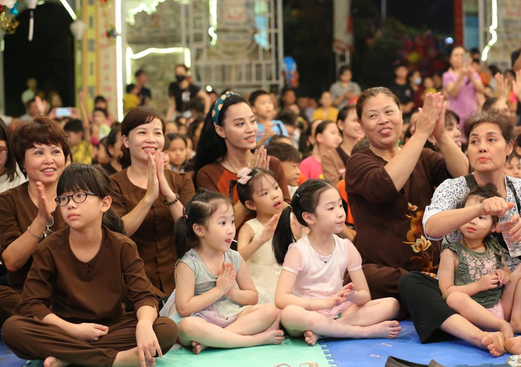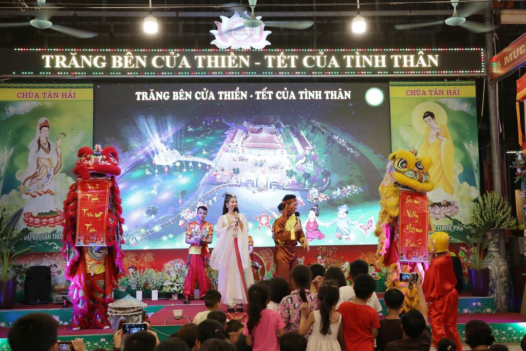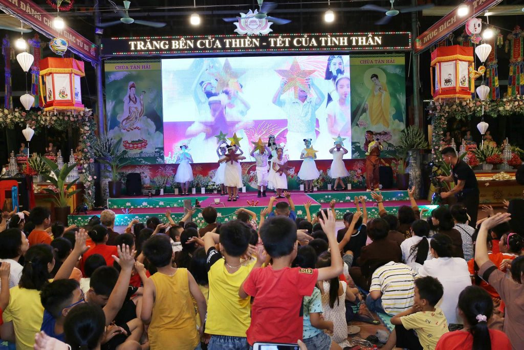 Tham dự Đêm hội Trăng rằm tại chùa Tân Hải, các bạn nhỏ được xem các anh chị biểu diễn tiết mục múa lân rồng truyền thống đặc sắc mà chỉ dịp tết trung thu các em mới được xem, tiết mục xiếc, ảo thuật do các cô chú tại rạp xiếc trung ương trình diễn, tiết mục múa hát dưới trăng vui nhộn do các bạn trẻ đang học tập tại Trung tâm nghệ thuật Be Singer trình diễn… Ngoài ra, các em còn được giao lưu cùng các bạn đồng trang lứa, giao lưu cùng chị Hằng Nga, chú Cuội, chơi các trò chơi dân gian và trả lời những câu hỏi liên quan đến sự tích, ý nghĩa của tết trung thu, sự tích về chú Cuội, chị Hằng… Bên cạnh đó, các em còn được nghe, được học một số uy nghi khi tới chùa, cách xưng hô, chào hỏi quý thầy trong chùa, cách lễ Phật, lạy Phật, niệm Phật do ĐĐ. Thích Quảng Hiếu - Bản tự chùa Tân Hải, Trưởng BTC chương trình chia sẻ.