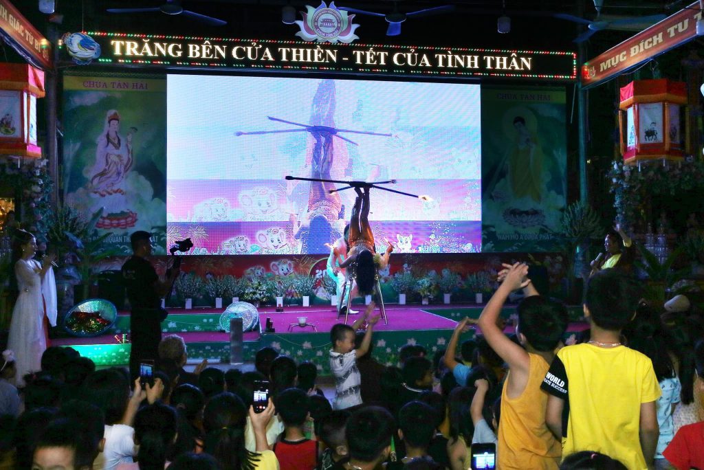 Tết trung thu hay còn gọi là Tết đoàn viên, là nét văn hóa truyền thống tốt đẹp của người Việt Nam, bởi nó mang ý nghĩa và nguồn gốc rất thú vị, là dịp để mỗi gia đình lại được đoàn tụ, quây quần bên nhau, cùng ngắm trăng, cùng phá cỗ, cùng ôn lại truyền thống tốt đẹp, quý báu của cha ông. Đặc biệt hơn nữa, nếu tết trung thu được tổ chức tại chốn thiền môn thì càng ý nghĩa hơn, bởi nơi đây còn trẻ sẽ có cơ hội được tiếp cận với Phật Pháp, tiếp xúc với những điều thiện lành. Chính vì lẽ đó, ĐĐ. Thích Quảng Hiếu - Bản tự chùa Tân Hải đã tổ chức chương trình trung thu “Trăng Bên Cửa Thiền” nhằm động viên các bạn trẻ trong học tập, đồng thời gieo duyên lành Phật Pháp, hướng thượng, hướng thiện cho các con.
