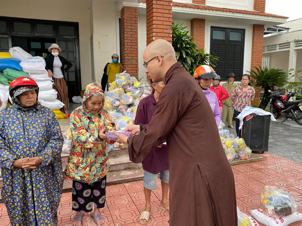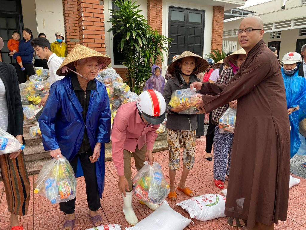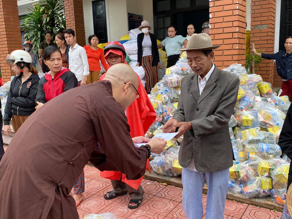 Đđ. Thích Quảng Hiếu trao quà tận tay cho bà con vùng lũ của tỉnh Thừa Thiên Huế