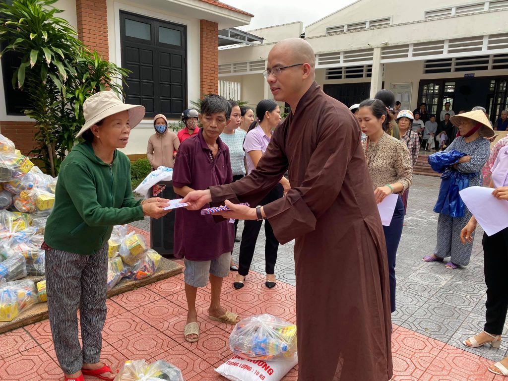 Bà con vùng lũ xúc động trước tình cảm mà các Phật tử chùa Tân Hải dành cho bà con