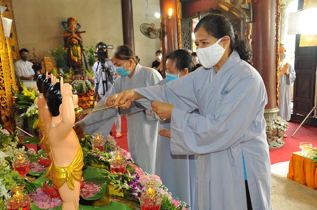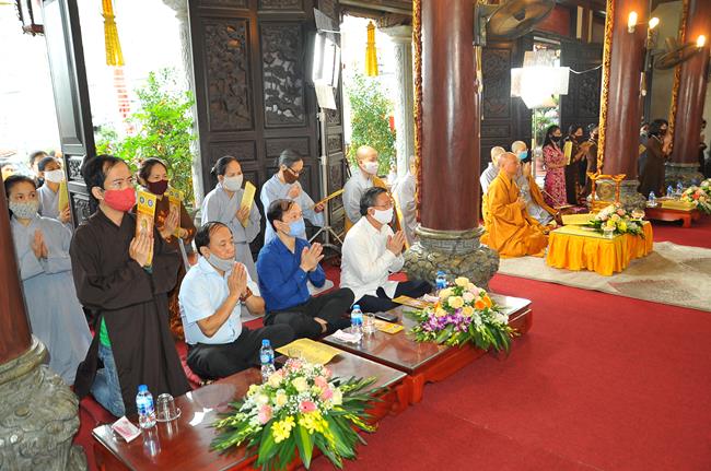 Chứng minh buổi lễ có Thượng tọa Thích Chiếu Tuệ - Ủy viên HĐTS, Phó trưởng Ban Hoằng pháp TƯ GHPGVN, Trưởng Ban Hoằng pháp GHPGVN thành phố Hà Nội; Ni sư trụ trì Thích Đồng Hòa - Ủy viên Thường trực Ban văn hóa TƯ GHPGVN, Trưởng Ban tổ chức đại lễ cùng chư Ni bản tự.