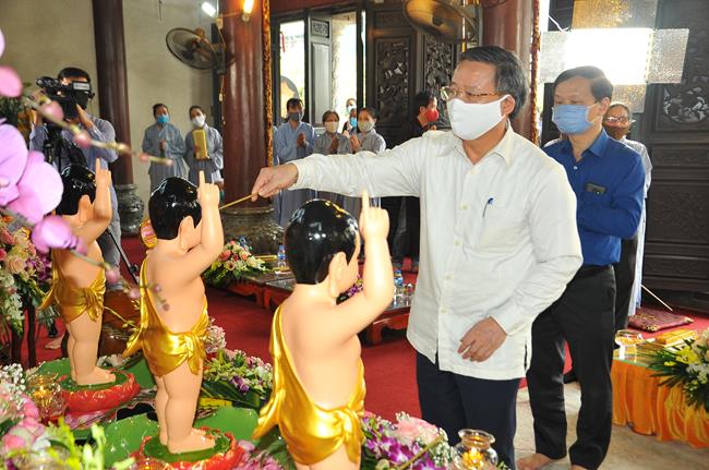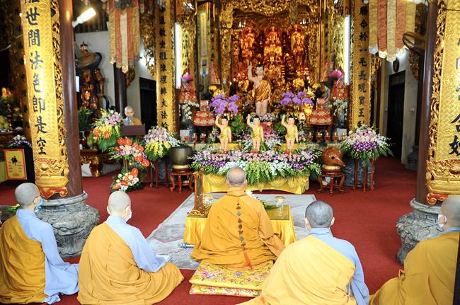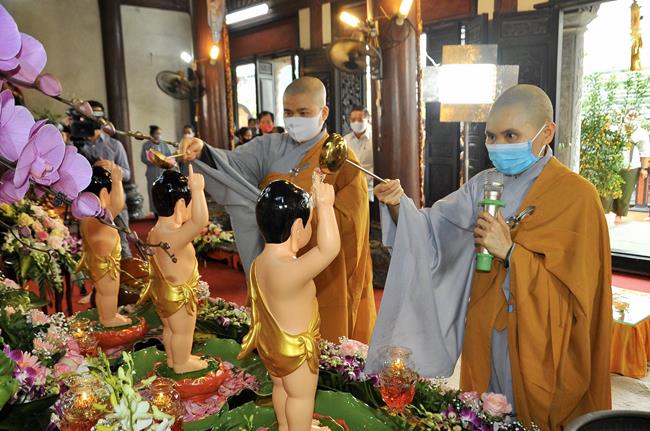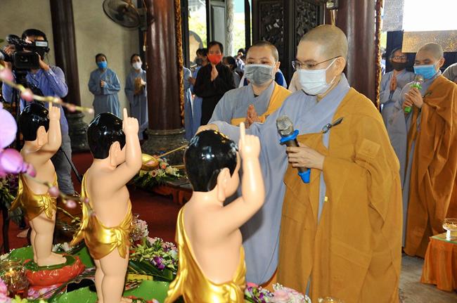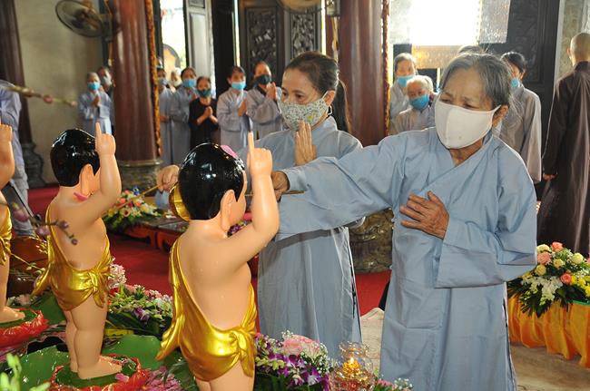 Sau lời phát biểu cảm tạ chương trình của Ni sư Thích Đồng Hòa, là phần quan trọng nhất của buổi lễ. Đó là nghi thức tắm Phật và kinh hành vòng quanh chính điện, khép lại buổi lễ thành tựu viên mãn và tràn đầy hỷ lạc.