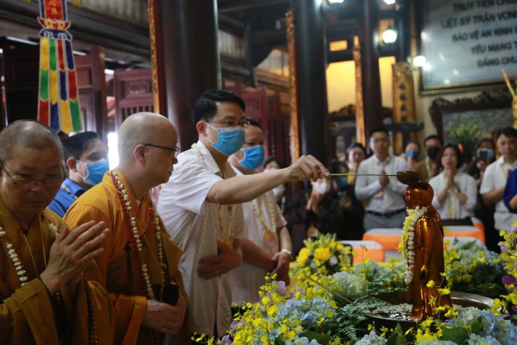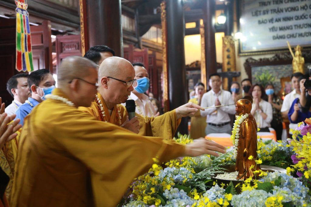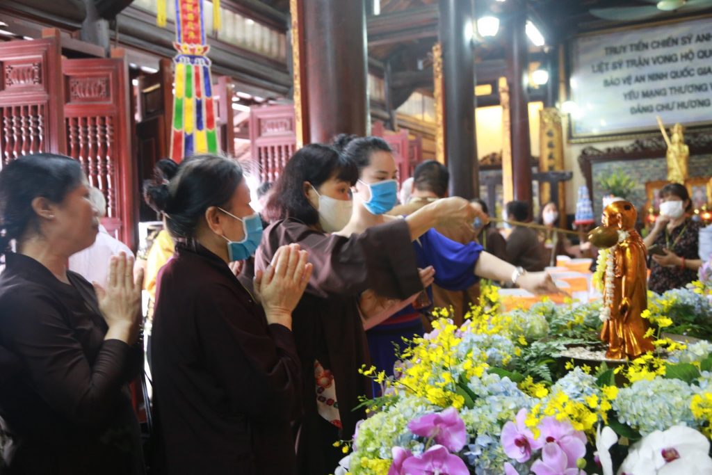 Cuối buổi lễ, nghi thức tắm Phật đầy thiêng liêng đã trang trọng được diễn ra trong không khí trang nghiêm của toàn thể hội chúng.