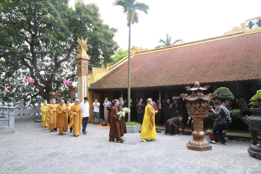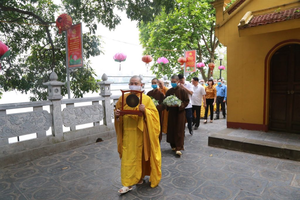 Tiếp đó, ban nghi lễ cung rước chư Tôn đức quang lâm lễ đài để chính thức cử hành đại lễ Phật Đản PL. 2564 – DL. 2020. Quang lâm tham dự có sự hiện diện của HT. Thích Thanh Nhã – Chánh văn phòng Hội đồng chứng minh, Ủy viên thường trực HĐTS GHPGVN, Phó trưởng BTS GHPGVN TP Hà Nội, Trụ trì chùa Trấn Quốc, Trưởng ban tổ chức Đại Lễ; TT. Thích Nguyên Hạnh - Ủy viên BTS GHPGVN TP Hà Nội; Ni trưởng Thích Đàm Thành - Ủy viên Thường trực HĐTS, Phó trưởng Phân ban Ni giới TƯ GHPGVN, Trưởng Ban ni giới GHPGVN TP Hà Nội; Ni sư Thích Đàm Đạo - Phó BTS GHPGVN quận Tây Hồ cùng chư Tôn đức Trụ trì các tự viện trên địa bàn quận.