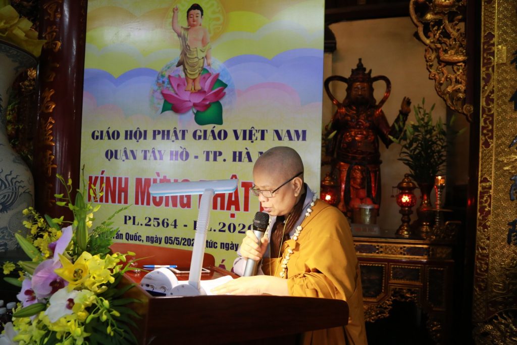 Trong không khí trang nghiêm, thanh tịnh, HT. Thích Thanh Nhã đã tuyên đọc Thông điệp của Đức Pháp Chủ GHPGVN gửi Tăng Ni, cư sĩ Phật tử Việt Nam nhân dịp Phật Đản PL 2564 – DL 2020. Tiếp đó, Ni sư Thích Đàm Đạo đã tuyên đọc diễn văn Phật Đản của HT. Thích Thiện Nhơn - Chủ tịch HĐTS GHPGVN.