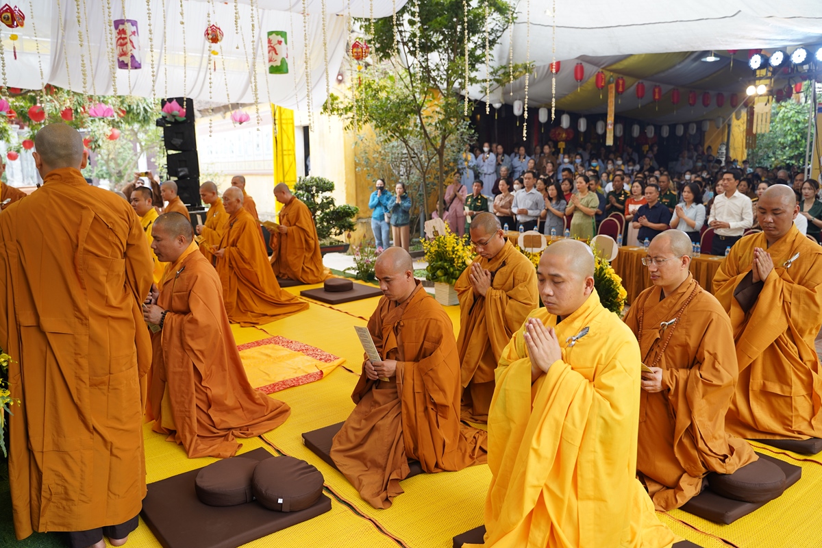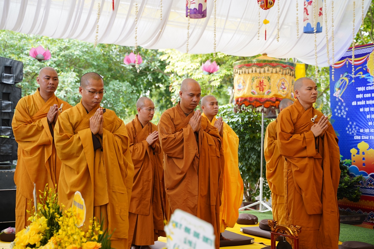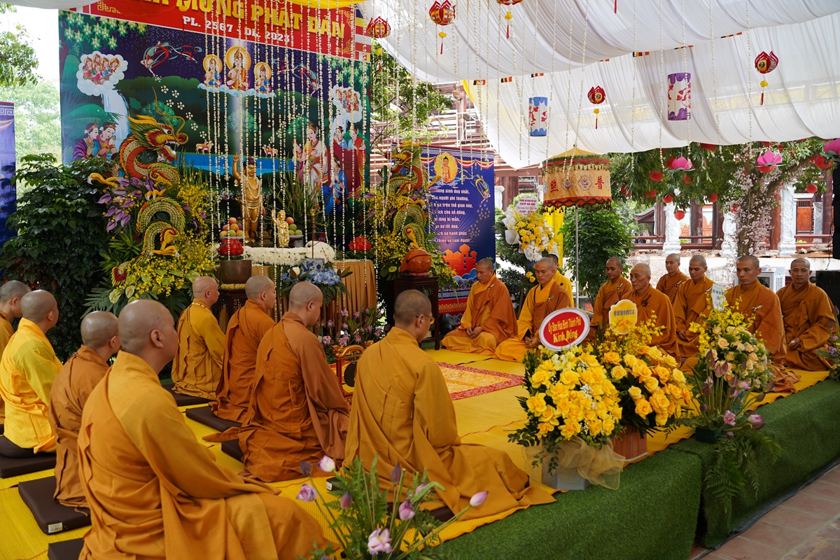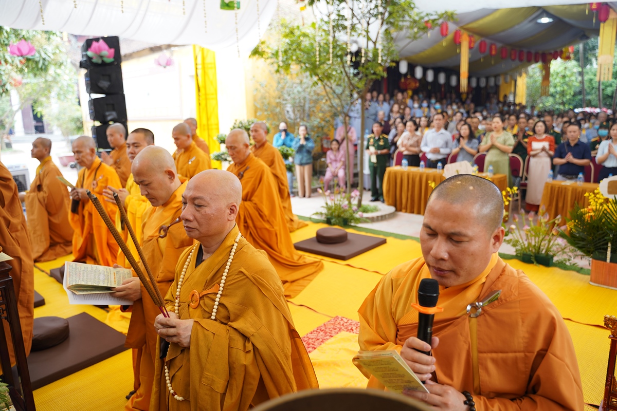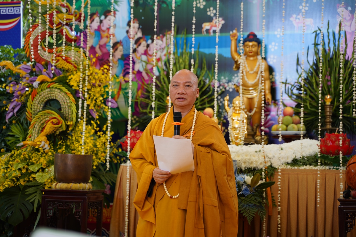 Tại đây, trong không khí trang nghiêm và thành kính, toàn thể đại chúng đã lắng nghe TT. Thích Chiếu Tuệ tuyên đọc thông điệp Phật đản PL. 2567 của Đức Pháp chủ GHPGVN - Trưởng lão HT. Thích Trí Quảng gửi đến Tăng Ni, cư sĩ Phật tử Việt Nam ở trong nước cũng như ở nước ngoài, với lời kêu gọi "Tăng Ni, Phật tử các giới nên ra sức làm các thiện sự, tích cực góp phần xây dựng đất nước, kiến tạo hòa bình tự thân để kết nên một đài sen cúng dường Đức Thế Tôn trong mùa Phật đản năm nay".
