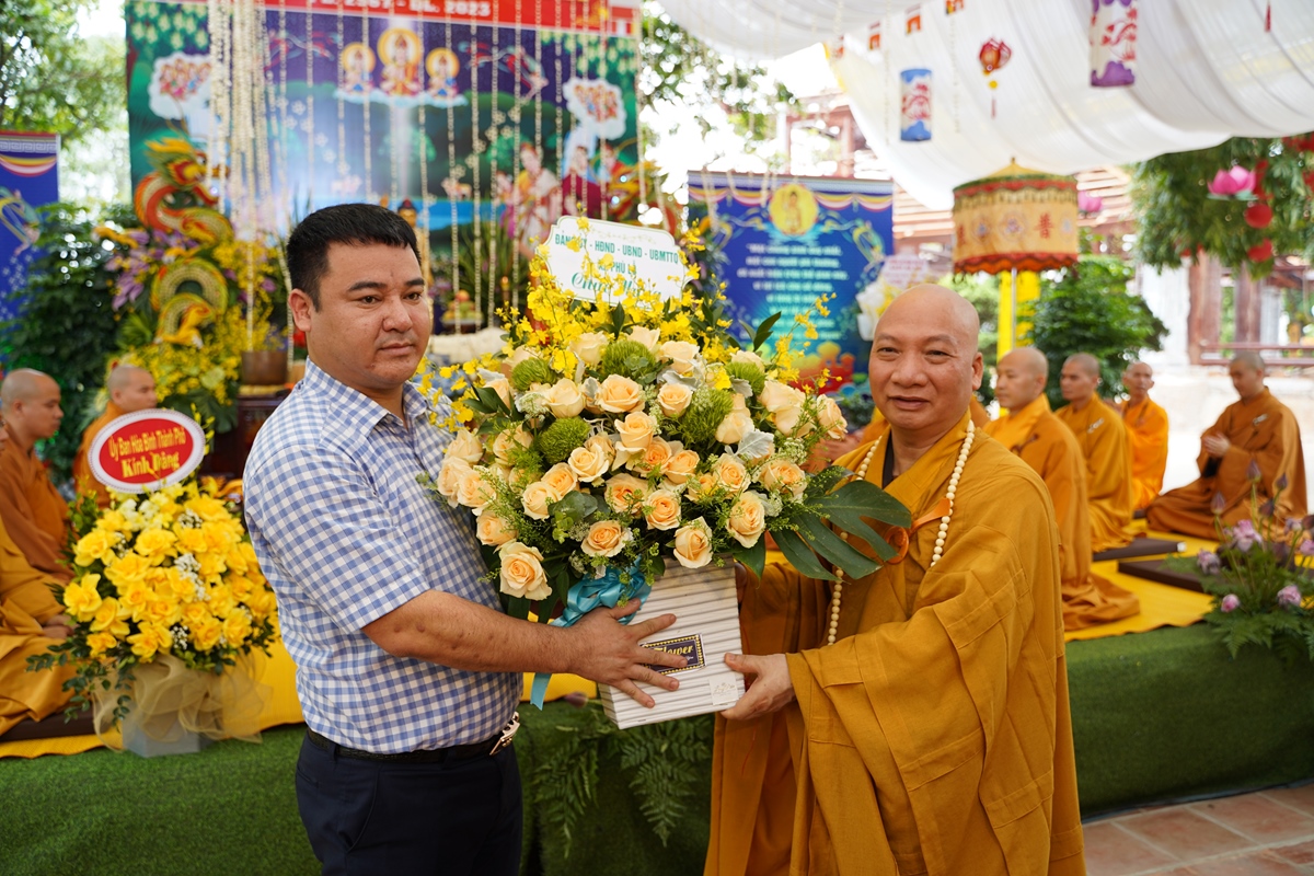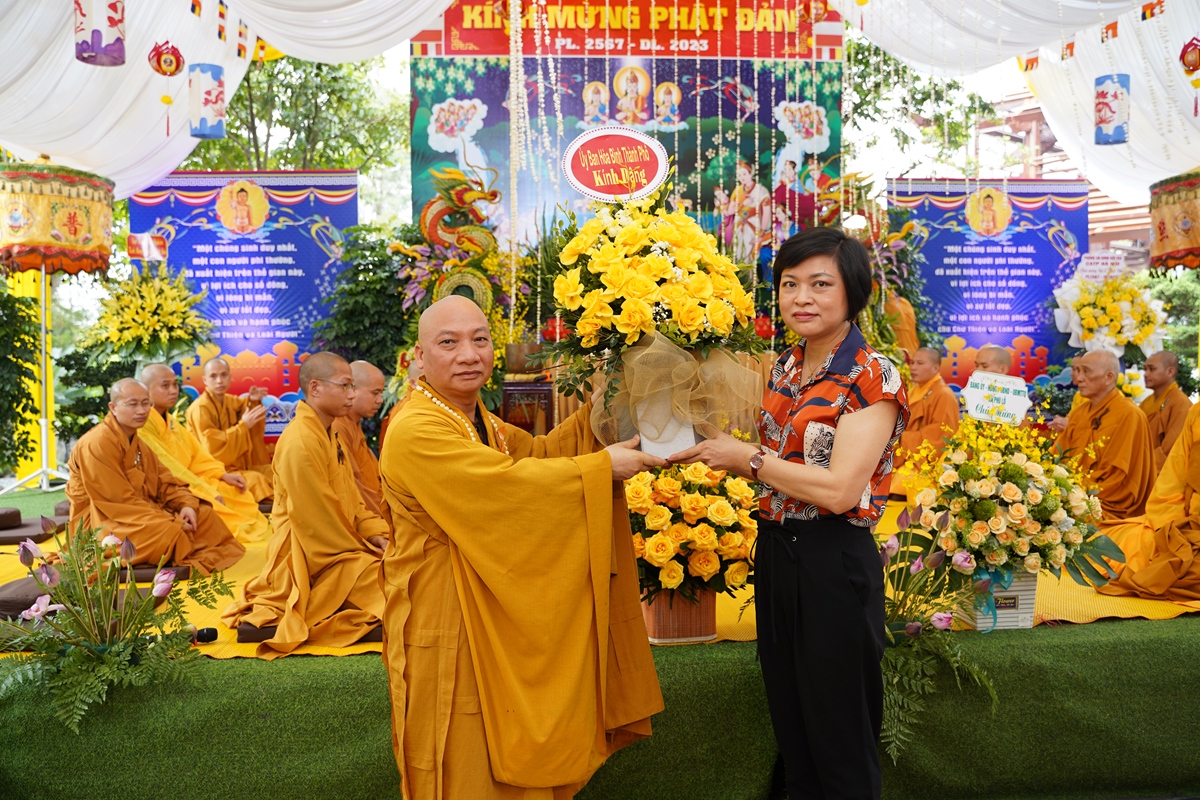 Nhân dịp này, chùa Vạn Phúc đã đón nhận những lẵng hoa tươi thắm của quý vị lãnh đạo chính quyền đại diện cho các cơ quan chức năng chúc mừng ngày Phật đản.