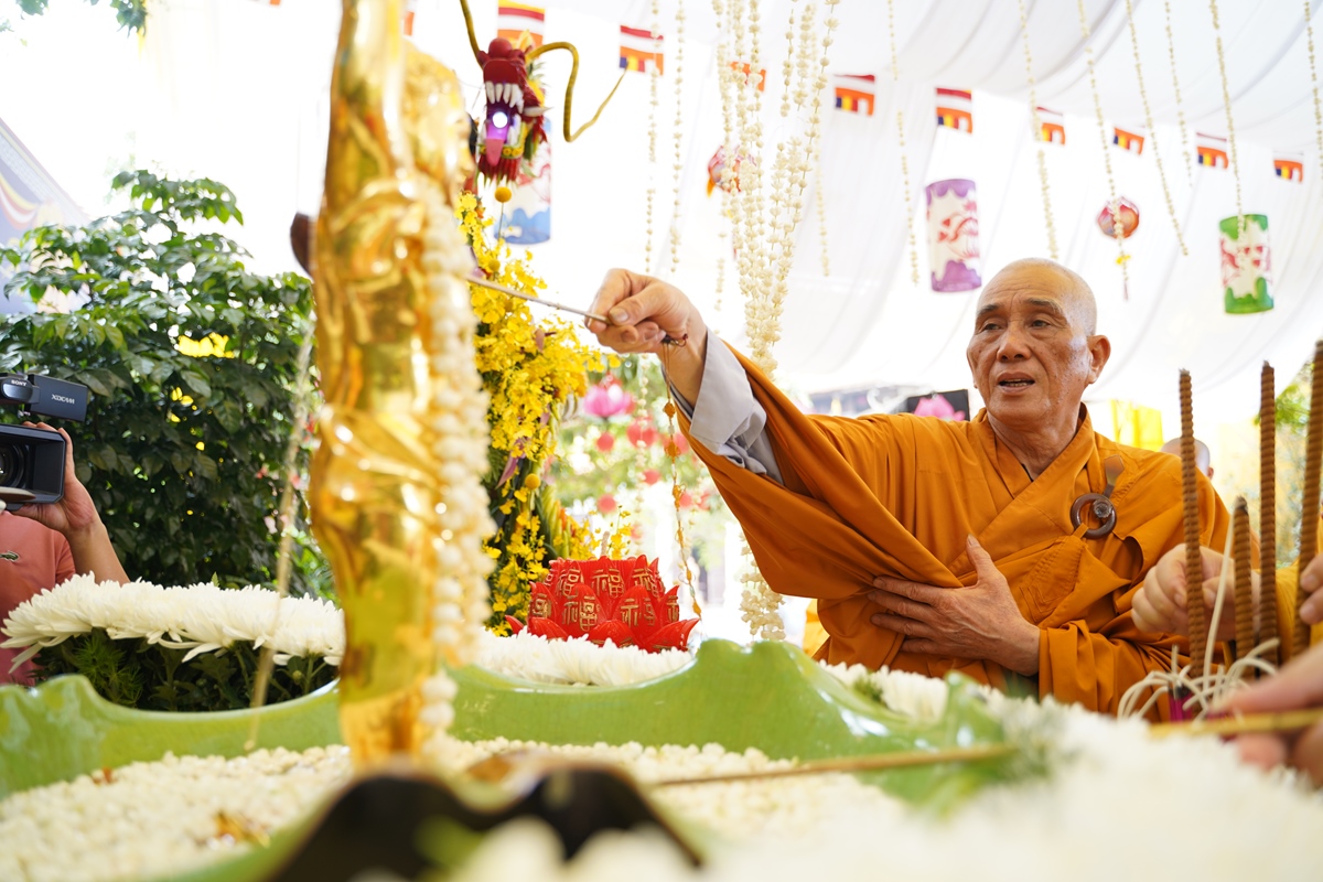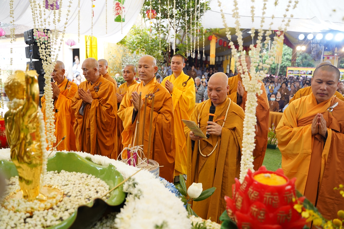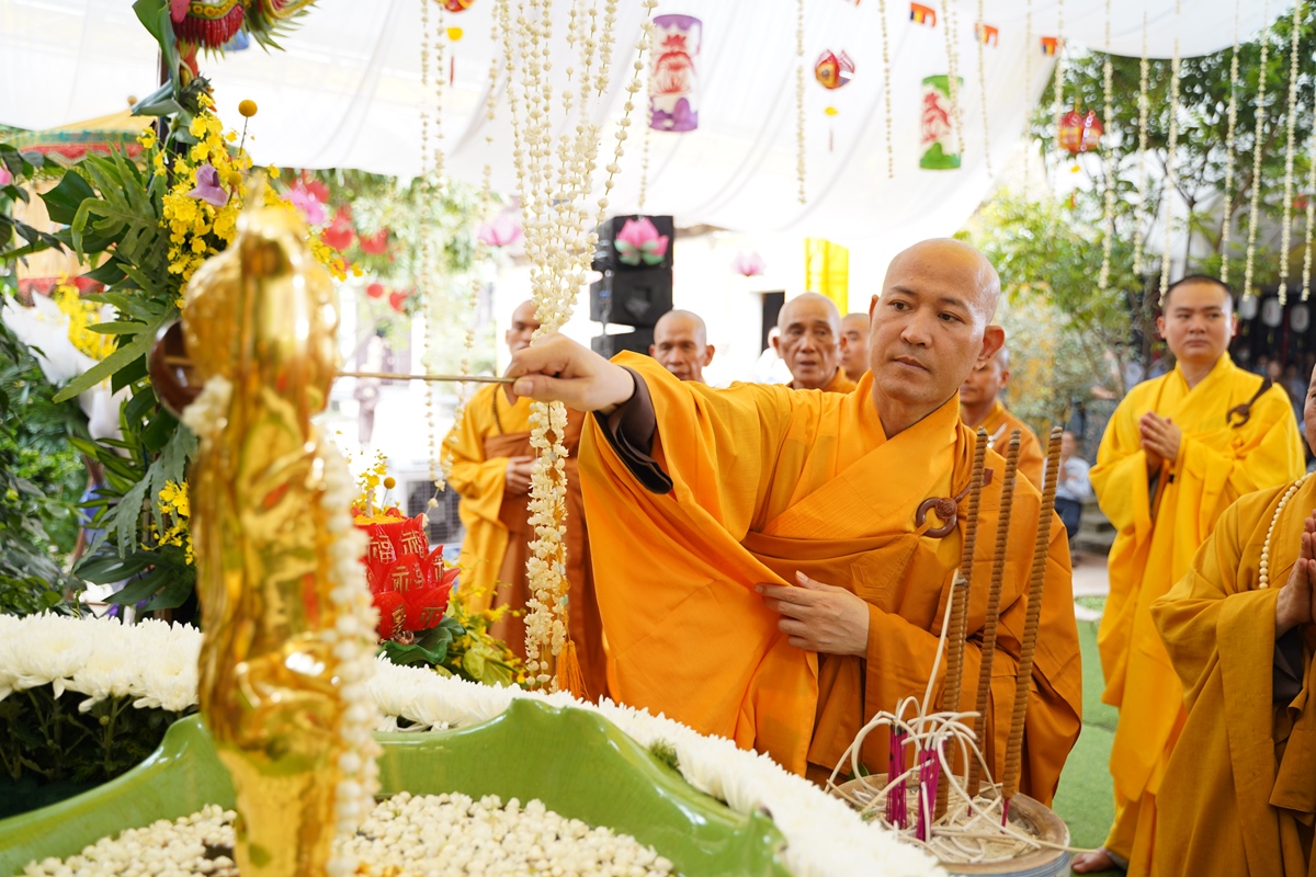Sau cùng, chư tôn đức cùng toàn thể đại chúng đã làm lễ niêm hương bạch Phật, tụng kinh Phật đản và thực hiện nghi thức tắm Phật truyền thống, khép lại buổi lễ thành tựu viên mãn trong niềm hỷ lạc của toàn thể hội chúng.