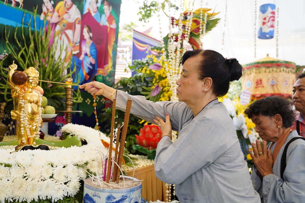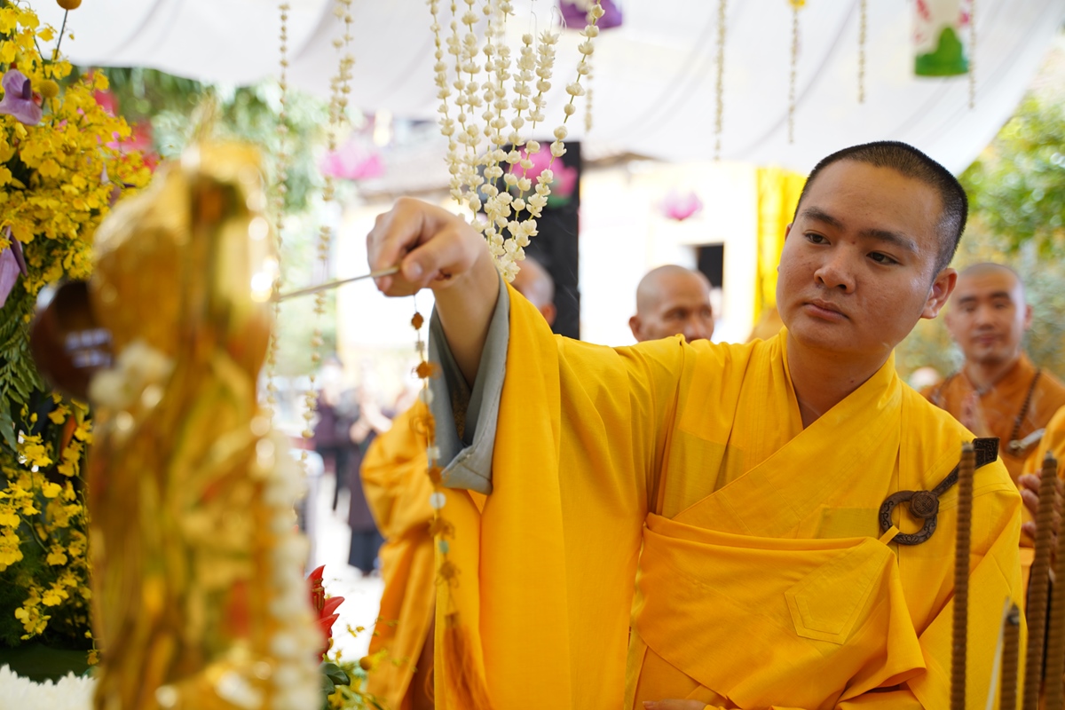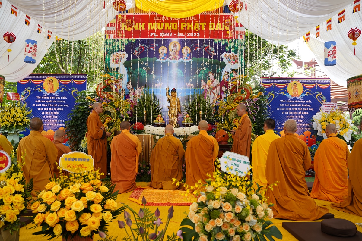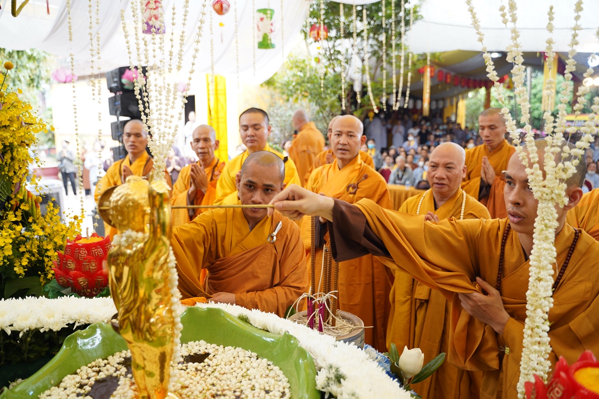 Sau cùng, chư tôn đức cùng toàn thể đại chúng đã làm lễ niêm hương bạch Phật, tụng kinh Phật đản và thực hiện nghi thức tắm Phật truyền thống, khép lại buổi lễ thành tựu viên mãn trong niềm hỷ lạc của toàn thể hội chúng.