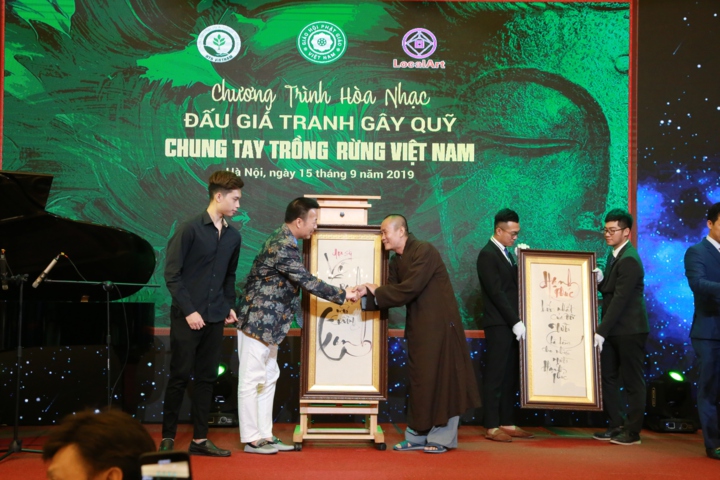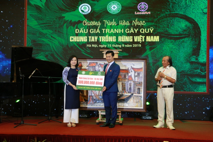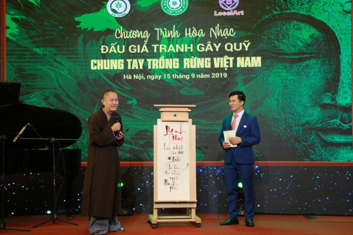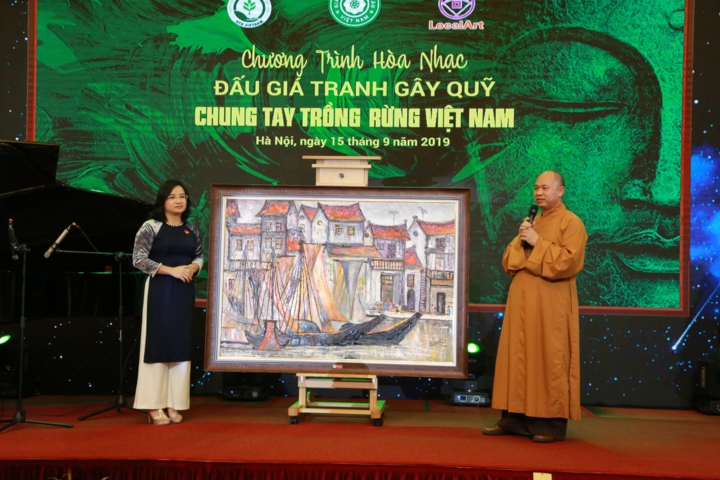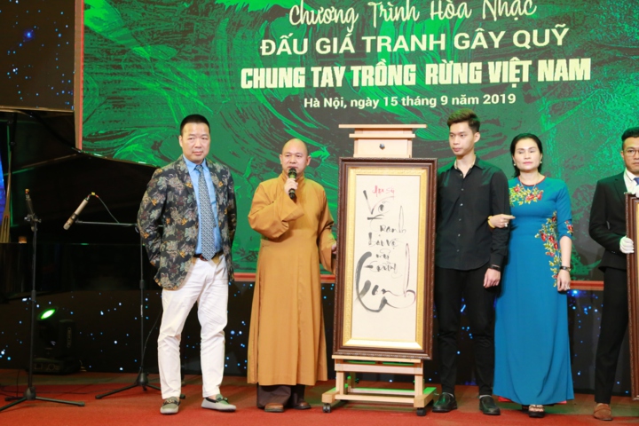 Chương trình Chung tay trồng rừng Việt Nam đã vinh dự được cá nhân Bà Tòng Thị Phóng, Uỷ viên Bộ Chính trị, Phó Chủ tịch Thường trực Quốc hội Nước CHXHCN Việt Nam ủng hộ 10 triệu đồng (tương đương 1/2 tháng lương), Hội đồng trị sự Giáo hội Phật giáo Việt Nam ủng hộ cây giống tổng trị giá 200 triệu đồng. Bên cạnh đó, chương trình còn nhận được sự đóng góp đến từ Lãnh đạo các doanh nghiệp, Tổng công ty, Tập đoàn kinh tế trong và ngoài nước. Chương trình ý nghĩa này đã được sự cho phép của Uỷ ban nhân dân TP Hà Nội (tại Giấy phép số 336/GP-UBND, ngày 03/9/2019) và Sở Văn hoá & Thể thao Hà Nội (tại Công văn số 575/GP-SVHTT, ngày 04/9/2019).Trong chương trình tối nay, toàn thể hội chúng đã được đắm chìm trong không gian đậm chất nghệ thuật và giàu tính nhân văn ý nghĩa, thưởng thức những màn biểu diễn đặc sắc của Nghệ sĩ Violin Maine Nishivama, Nghệ sĩ Piano Hoàng Hồ Thu, nghệ sĩ Piano Keibo Borjeson. Đồng thời, tất cả những quan khách hiện diện đã cùng tham gia chương trình đấu giá tranh gây Quỹ chung tay trồng rừng Việt Nam. Lần thứ nhất đấu giá 2 bức “Bản giao hưởng vàng son” của tác giả Đình Quân và tác phẩm “Bến tam bạc” của tác giả Lê Đình Quý. Lần thứ hai đấu giá ba bức tranh: “Hương sen vàng” của tác giả Hồ Đình Nam Kha, “Phố làng hòa hợp” của tác giả Lê Nguyên Mạnh và “Chợ xuân xưa” của tác giả Lê Lộc.