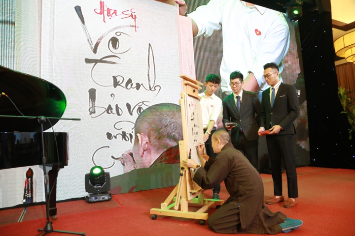 Đặc biệt, tại buổi tối nay còn có bức thư pháp do Thượng tọa Thích Nhuận Tâm – trụ trì chùa Lá – quận Gò Vấp – thành phố Hồ Chí Minh viết dành tặng chương trình.