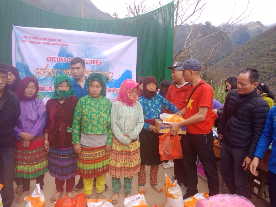 Về đại diện chính quyền địa phương có sự hiện diện của đồng chí Sùng Mí Chá- Chủ tịch UBND xã Lũng Thầu, các đồng chí đại diện cho các ban ngành đoàn thể xã Lũng Thầu, huyện Đồng Văn, cùng đông đảo bà con nhân dân và đại diện hơn 100 hộ gia đình, hơn 100 em nhỏ được nhận quà trong chương trình từ thiện. Bà con háo hức chuẩn bị đón những phần quà ý nghĩa “Nắng Yêu Thương Về Bản” là một trong những hoạt động thiện nguyện thường niên của các Phật tử là thành viên trong CLB Tấm Lòng Yêu Thương và CLB Ươm Mầm Ước Mơ. Xuất phát từ tấm lòng Từ Bi của Đạo Phật, với tinh thần “tương thân tương ái”, “lá lành đùm lá rách”, cùng mong muốn có thể mang đến cho bà con vùng bản một cái Tết đủ đầy hơn, ấm cúng hơn, chương trình “Nắng Yêu Thương năm 2019” đã dành 100 suất quà nghĩa tình để trao tận tay 100 hộ gia đình có hoàn cảnh khó khăn và hơn 100 em nhỏ tại xã Lũng Thầu, huyện Đồng Văn, mỗi hộ 01 suất quà trị giá hơn 500.000 đồng bao gồm: Gạo, chăn, màn,….và nhiều nhu yếu phẩm khác phục vụ thiết thực cho cuộc sống của bà con.