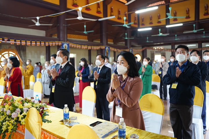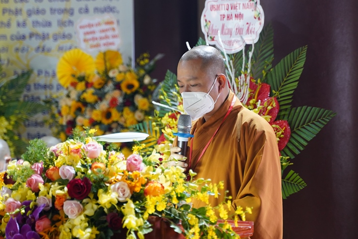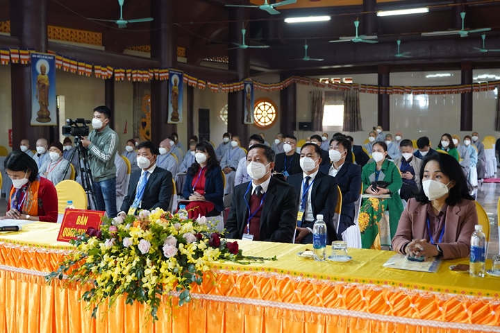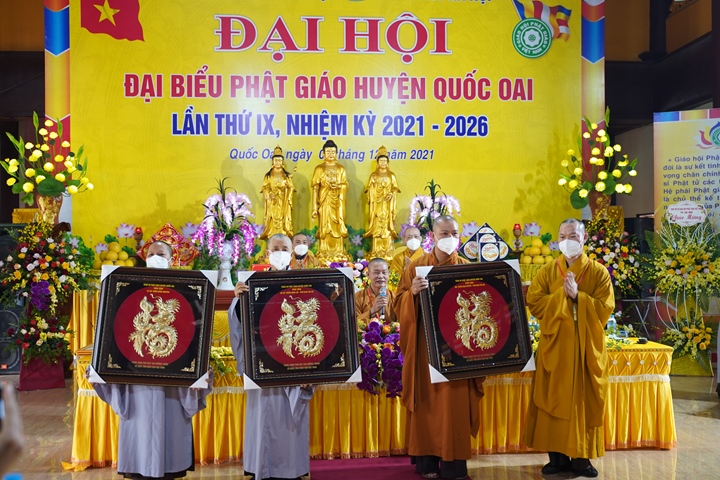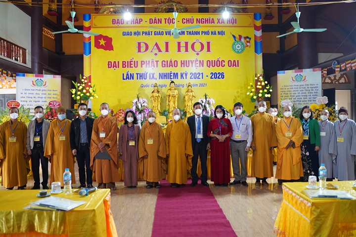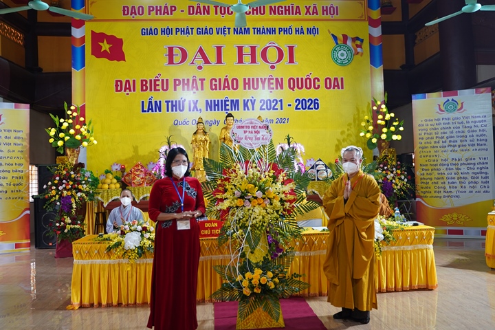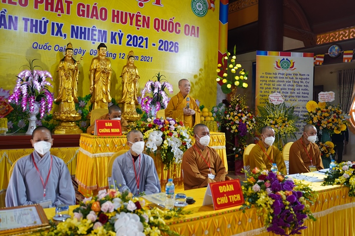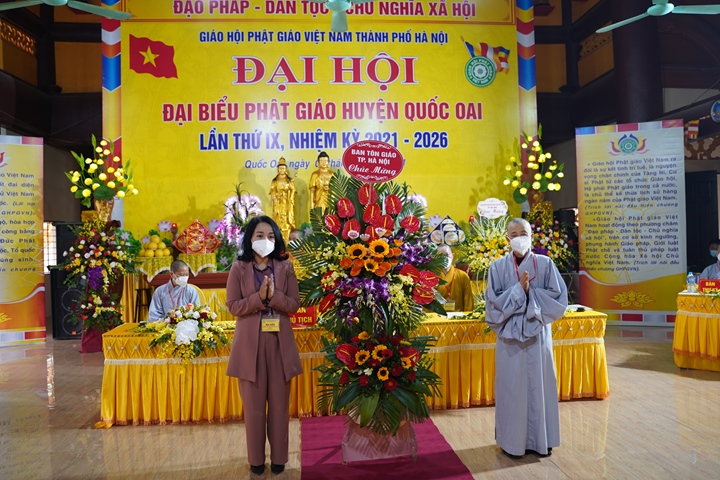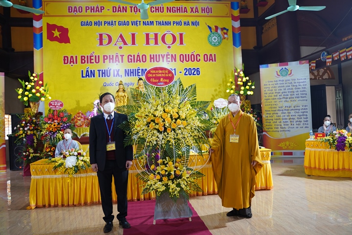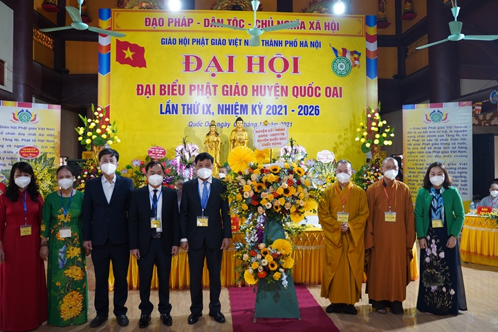 Phát biểu chúc mừng Đại hội, ông Nguyễn Tiến Quý - Ủy viên Ban thường vụ Huyện ủy, Chủ tịch Ủy ban Mặt trận Tổ quốc Việt Nam huyện Quốc Oai đã ghi nhận và chúc mừng những đóng góp của BTS Phật giáo huyện nhà vào sự phát triển chung của quê hương Quốc Oai giàu truyền thống anh hùng. Ông mong rằng sang nhiệm kỳ mới, BTS GHPGVN huyện Quốc Oai tích cực phối hợp cùng các cấp Ủy Đảng, Chính quyền, các ban ngành đoàn thể địa phương trong công tác tuyên truyền đường lối, chính sách của Đảng, Nhà nước trong công tác Tôn giáo, đặc biệt là Luật tín ngưỡng Tôn giáo năm 2018, đảm bảo các hoạt động Tôn giáo hoạt động đúng Luật; Tiếp tục gìn giữ và phát huy những giá trị truyền thống tốt đẹp của Phật giáo trong thời kỳ mới, hưởng ứng và tham gia tích cực phong trào thi đua yêu nước, với phương châm "Đạo pháp - Dân tộc - Chủ nghĩa xã hội"; tăng cường vận động Tăng Ni, Phật tử tham gia xây dựng và bảo vệ Tổ quốc; thực hiện tốt các phong trào xây dựng nông thôn mới, giữ gìn an ninh chính trị, đặc biệt là công tác phòng chống dịch Covid - 19 trong giai đoạn mới....