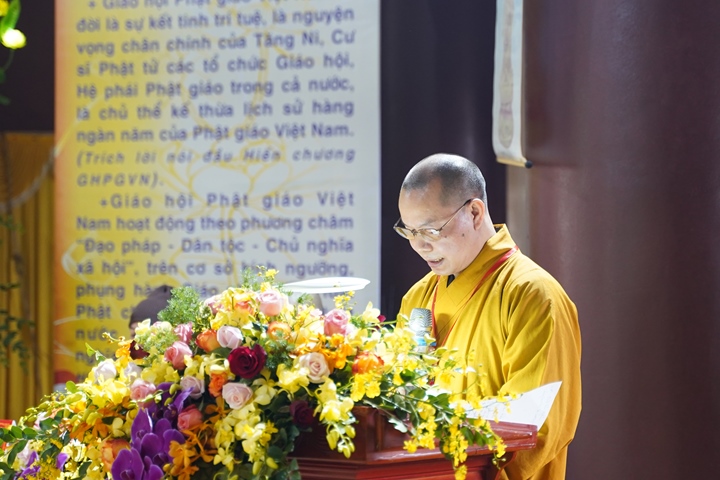 Đại đức Thích Đạo Duyên phát biểu bế mạc Đại hội