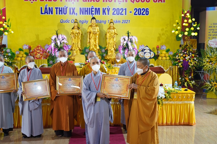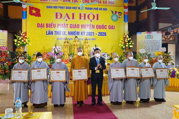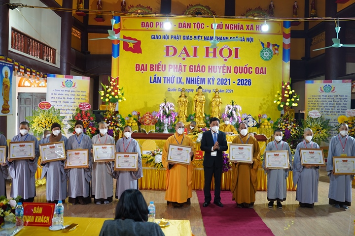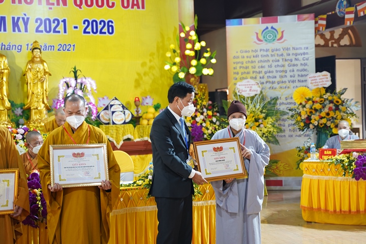 Nhân dịp này, Ủy ban MTTQ Việt Nam Thành phố Hà Nội đã tặng Bằng khen cho 1 tập thể và 2 cá nhân có thành tích trong sự nghiệp xây dựng khối đại đoàn kết toàn dân giai đoạn 2016-2021. UBND huyện Quốc Oai đã tặng Giấy khen cho 23 tập thể và 20 cá nhân có thành tích xuất sắc trong công tác Phật sự giai đoạn 2016 - 2021.