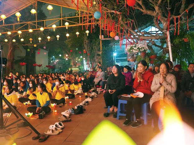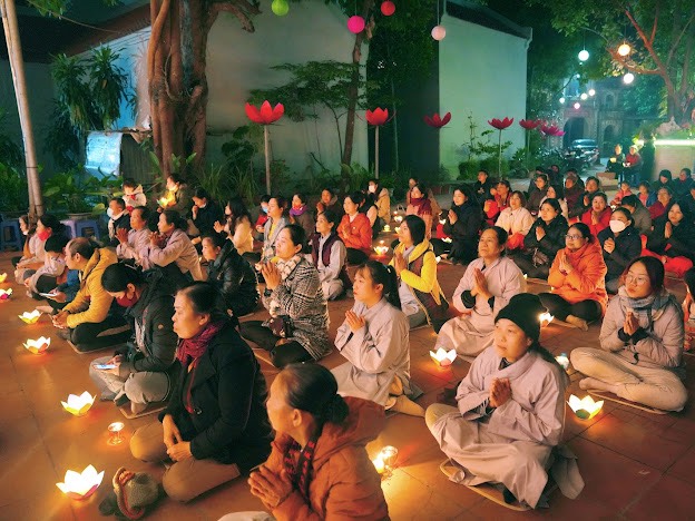 PSO - Ngày 10/12/2022 (nhằm ngày 17/10/Nhăm Dần), tại chùa Nguyễn Xá (Dương Đình, Dương Xá, Gia Lâm, Hà Nội) đã lọng trọng tổ chức Đêm văn nghệ - Hoa đăng mừng Khánh đản Đức Phật A Di Đà. Tham dự buổi lễ có ĐĐ.Thích Quảng Phúc - Ủy viên Ban TT-XH Trung ương, Thủ quỹ Ban TT-XH thành phố, Ban HDPT TP.Hà Nội, Trụ trì chùa Nguyễn Xá cùng chư Tôn đức trên địa bàn huyện Gia Lâm và quận Long Biên đồng về tham dự. Phía khách mời còn có ông Tô Hữu Vịnh, Chủ tịch Ủy ban Nhân dân xã Dương Xá; ông Phạm Danh Xếp, Ban Di tích Đình đền chùa cùng đông đảo sinh viên Hà Nội, Đại học Thái Nguyên và 500 Phật tử tham dự. Mở đầu buổi lễ là những tiết mục văn nghệ do các bạn Sinh viên CLB Thu Xanh cúng dàng lên chư Tôn đức. Tiếp đó là cung nghinh chư Tôn đức quang lâm buổi lễ. Diễn văn khai mạc nói lên ý nghĩa ngày tu và 48 lời nguyện của Đức Phật A Di Đà. Toàn thể hội chúng có những giây phút lắng lòng thanh tịnh nghe thời Pháp thoại của ĐĐ.Thích Quảng Phúc thuyết giảng qua ý nghĩa đêm hoa đăng và sơ lược về lịch sử của Đức Phật A Di Đà. Trong giờ phút thiêng liêng toàn thể Hội chúng cùng cầm ngọn nến trên tay với lòng thành kính sâu sắc quán tưởng tới công lao của Đức Phật A Di Đà, ngọn nến lung linh huyền ảo đã dần dần được lan tỏa đến hàng Phật tử làm ấm lại tâm hồn của mỗi người cũng như không gian của đêm hội. Cuối buổi lễ tất cả chư Tôn đức cùng hội chứng cùng hồi hướng và tạ lễ, buổi lễ kết thúc thành công viên mãn. Sau đây là một số hình ảnh được ghi nhận: