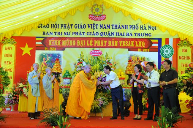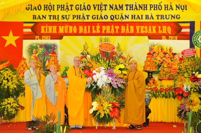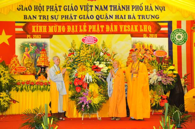 Tại buổi lễ, BTS GHPGVN quận Hai Bà Trưng đã hoan hỷ đón nhận những lẵng hoa tươi thắm của quý chư tôn đức chứng minh cùng đại diện chính quyền các cấp chúc mừng đại lễ Phật đản PL2563 - DL2019.