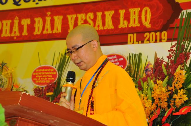 Sau đó, Đại đức Thích Đạo Thông đã đọc Diễn văn đại lễ Phật đản PL2563 – DL2019 của Hòa thượng Thích Thiện Nhơn – Chủ tịch HĐTS TW GHPGVN.