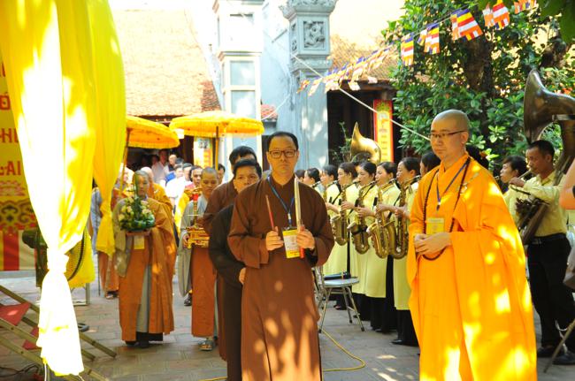 Quang lâm chứng minh buổi lễ có: Hòa thượng Thích Thanh Nhã - Chánh văn phòng HĐCM GHPGVN, Ủy viên thường trực HĐTS GHPGVN, Phó trưởng ban BTS GHPGVN thành phố Hà Nội; Hòa thượng Thích Thanh Phúc - Ủy viên thường trực HĐTS GHPGVN, Phó trưởng ban BTS GHPGVN thành phố Hà Nội; Hòa thượng Thích Thanh Ngọ - Ủy viên thường trực BTS GHPGVN thành phố Hà Nội; Đại đức Thích Đạo Thông - Ủy viên BTS GHPGVN thành phố Hà Nội, Trưởng BTS GHPGVN quận Hai Bà Trưng, Trưởng Ban tổ chức Đại lễ; Ni sư Thích Đàm Hiếu - Ủy viên BTS GHPGVN thành phố Hà Nội, Ủy viên thường trực Ban đặc trách Ni chúng GHPGVN thành phố Hà Nội, Phó ban thường trực Ban tổ chức đại lễ; Ni sư Thích Đàm Thanh - Phó BTS GHPGVN quận Hai Bà Trưng, phó ban tổ chức đại lễ cùng chư tôn đức Tăng Ni trong BTS GHPGVN quận Hai Bà Trưng, chư tôn đức Tăng Ni trụ trì các chùa, tự viện trong địa bàn thành phố Hà Nội. Về phía chính quyền có sự hiện diện tham dự của ông Bùi Quang Đệ - Đại diện Ban dân vận Thành ủy Hà Nội; ông Ngô Trí Dược - Phó trưởng phòng PA02 công an thành phố Hà Nội; ông Nguyễn Văn Nam - Thành ủy viên, Bí thư quận ủy quận Hai Bà Trưng; bà Đinh Thị Lan Duyên - Phó Bí thư thường trực Quận ủy, Chủ tịch HĐND quận Hai Bà Trưng; ông Lâm Anh Tuấn - Ủy viên thường vụ quận ủy, chủ tịch Ủy ban Mặt trận Tổ quốc quận Hai Bà Trưng; ông Vũ Văn Hoạt - Phó chủ tịch UBND quận Hai Bà Trưng; bà Nguyễn Thị Thu Hiền - Phó chủ tịch thường trực HĐND quận Hai Bà Trưng; Đại tá Đinh Huy Hoàng - Trưởng công an quận Hai Bà Trưng; ông Nguyễn Quang Trung - Ủy viên thường vụ quận ủy, Trưởng Ban dân vận quận Hai Bà Trưng; ông Trần Quyết Thắng - Trưởng ban tổ chức quận ủy quận Hai Bà Trưng; ông Nguyễn Duy Sơn - Trưởng phòng nội vụ quận Hai Bà Trưng; Giáo sư Thượng Mai Thanh – Trưởng ban cai quản Thánh thất Cao đài thủ đô Hà Nội; Ông Trần Mạnh Thành – Trưởng ban đoàn kết Công giáo quận Hai Bà Trưng cùng quý vị lãnh đạo đại diện cho quận ủy, HĐND, UBND, Ủy ban Mặt Trận Tổ Quốc, các cơ quan chức năng, ban ngành của thành phố Hà Nội, quận Hai Bà Trưng và phường Đồng Nhân.