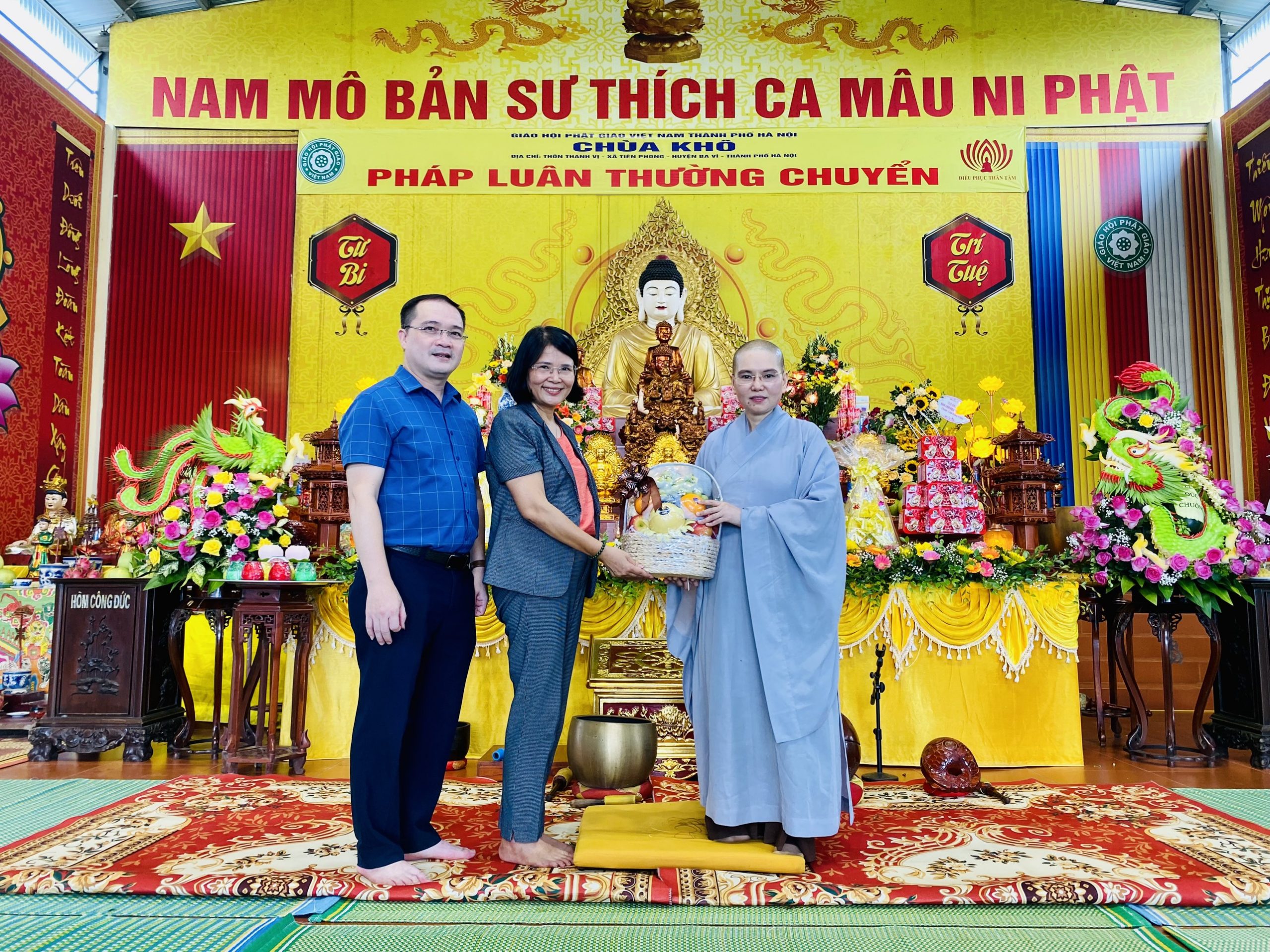 Về chứng minh gia trì chú nguyện có TT. Thích Chiếu Tuệ, Uỷ viên HĐTS TƯ GHPGVN, Trưởng ban Hoằng pháp GHPGVN TP. Hà Nội; TT. Thích Thanh Trung, Uỷ viên BTS GHPGVN thành phố, Trưởng BTS GHPGVN quận Long Biên; TT. Thích Thanh Tâm, Trụ trì chùa Vàng (xã Cổ Bi, huyện Gia Lâm, TP. Hà Nội) (đương vi chủ sám đại lễ); ĐĐ.Thích Quảng Phú, Uỷ viên BTS GHPGVN thành phố, Phó Trưởng ban BTS GHPGVN huyện Thạch Thất; NS. Thích Đồng Hoà, Uỷ viên Thường trực Ban Văn hoá TƯ GHPGVN, Trụ trì chùa Khô, Trưởng BTC đại lễ.