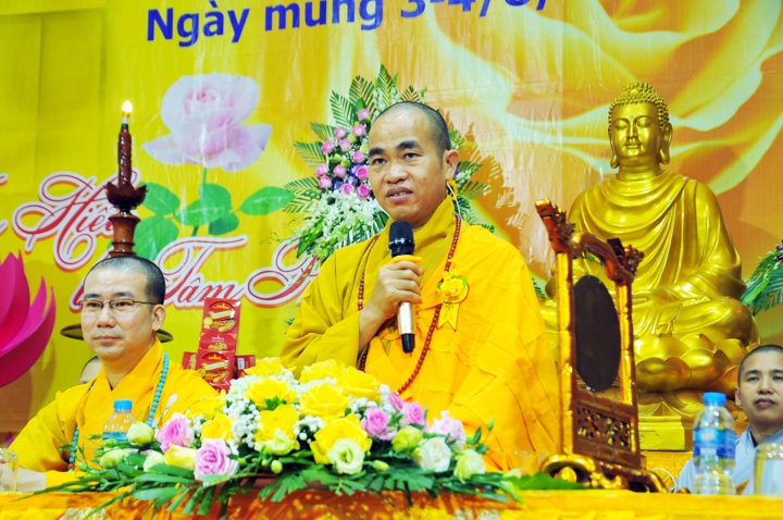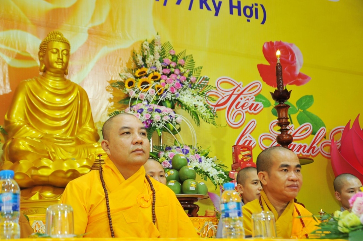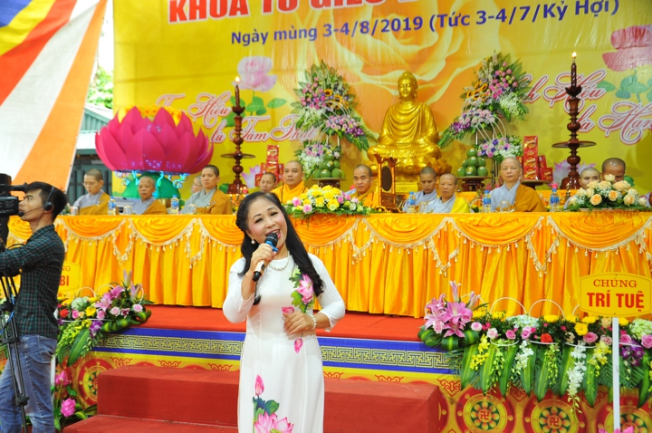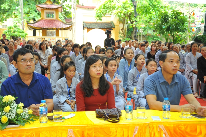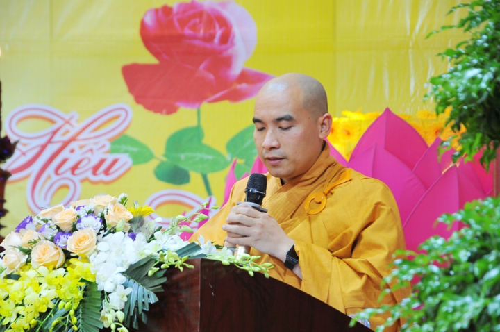 Mở đầu buổi lễ, sư cô trụ trì Thích Đồng Hòa đã phát biểu khai mạc, nhấn mạnh “Mùa Vu lan báo hiếu là một trong những mùa Lễ hội thiêng liêng cao quý của Phật giáo, nhằm tiếp nối truyền thống báo hiếu báo ân của người con Phật….Vì thế chúng ta cần phải tổ chức những buổi pháp thoại, chia sẻ, văn nghệ, lễ hội… và làm tất cả các việc công đức lành để hồi hướng tôn vinh người mẹ, người cha hiền của mình, tôn vinh những người mẹ Việt Nam anh hùng, đã sinh ra những người con ưu tú biết hy sinh cho đất nước, dân tộc, mang lại độc lập tự do và hạnh phúc cho nhân dân. Chúng ta nên thường xuyên nghĩ đến những công ơn cha mẹ của mình trong đời hiện tại để chăm lo phụng dưỡng, cha mẹ quá khứ đã qua đời thì thiết lập đàn tràng, cầu siêu bạt độ cho chư anh linh, cửu huyền thất tổ, lịch đại tông thân, bá thúc cô di, huynh đệ, tỷ muội của mình, nương nhờ công đức Vu lan- Báo hiếu, gương hiếu hạnh của Đức Phật, của Tôn giả Đại hiếu Mục Kiền Liên Bồ tát mà được siêu sinh về thế giới an lành. Đồng thời tổ chức cầu siêu cho các anh linh, anh hùng liệt sỹ, chất độc màu da cam đã hy sinh vì tổ quốc, để cho chúng ta có cuộc sống hôm nay ấm êm, hạnh phúc, an vui trong một đất nước hòa bình độc lập và thống nhất.