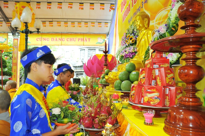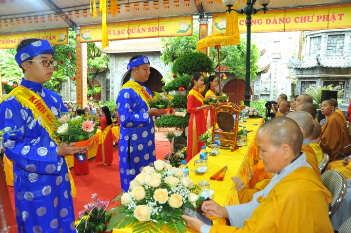Sau lời phát biểu khai mạc của Sư cô Thích Đồng Hòa là nghi thức dâng hoa cúng dường của các bạn Thanh thiếu niên Phật tử chùa Tăng Phúc.