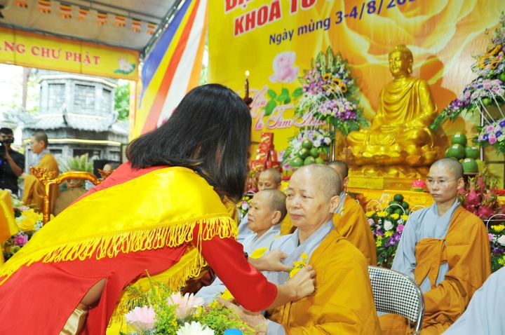 Tại buổi lễ, Thượng tọa Thích Đức Thường đã có lời đạo từ tới toàn thể đại chúng, tán thán sư cô trụ trì Thích Đồng Hòa vì lòng nhiệt tâm với đạo Pháp, với dân tộc, với chúng sinh mà tổ chức ra nhiều khóa tu ý nghĩa trong suốt những năm qua. Hơn nữa nhân mùa vu lan này, sư cô trụ trì đã tổ chức ra khóa tu gieo duyên cho các em nhỏ tiếp cận với đạo Phật, giúp các em học hỏi được những điều tốt đẹp của giáo lý Phật đà, làm hành trang để tương lai trở thành một người công dân tốt, có ích cho xã hội, sống cuộc sống thiện lành. Thượng tọa nhấn mạnh “Một con người không thể sống thiếu đạo được. Đạo ở đây là con đường chân chính, đạo là nghĩa vụ, trách nhiệm, bổn phận của chúng ta đó chính là đạo làm con, đạo vợ chồng, đạo thầy trò.v.v…Mỗi người trong xã hội chỉ cần hiểu về tinh thần của đạo Phật, đều có lòng từ bi, biết nuôi dưỡng Phật tính trong mình, biết tin luật Nhân Quả thì cả xã hội sẽ được bình yên. Đến với đạo Phật là để học đạo đức nhân nghĩa, đạo từ bi, đạo trí tuệ để khi làm việc gì, từ lời nói, việc làm hay hành động, suy nghĩ đều phải chân chính”.