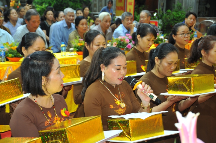 Tiếp đó, Phật tử Diệu Đan đã đọc bài cảm niệm vu lan trong niềm xúc động của toàn thể hội chúng. Từng lời cất lên như đang đánh thức những trái tim vô cảm vì bấy lâu nay còn mải mê với cuộc sống mưu sinh mà quên mất đi 2 đấng sinh thành, chợt tỉnh giấc mà quay về bên gia đình, bên “hai vị Phật” quan trọng nhất của đời ta…