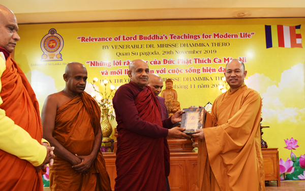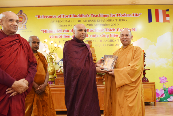 TT Thích Đức Thiện tặng quà lưu niệm tới Chư Tăng Sri Lanka.