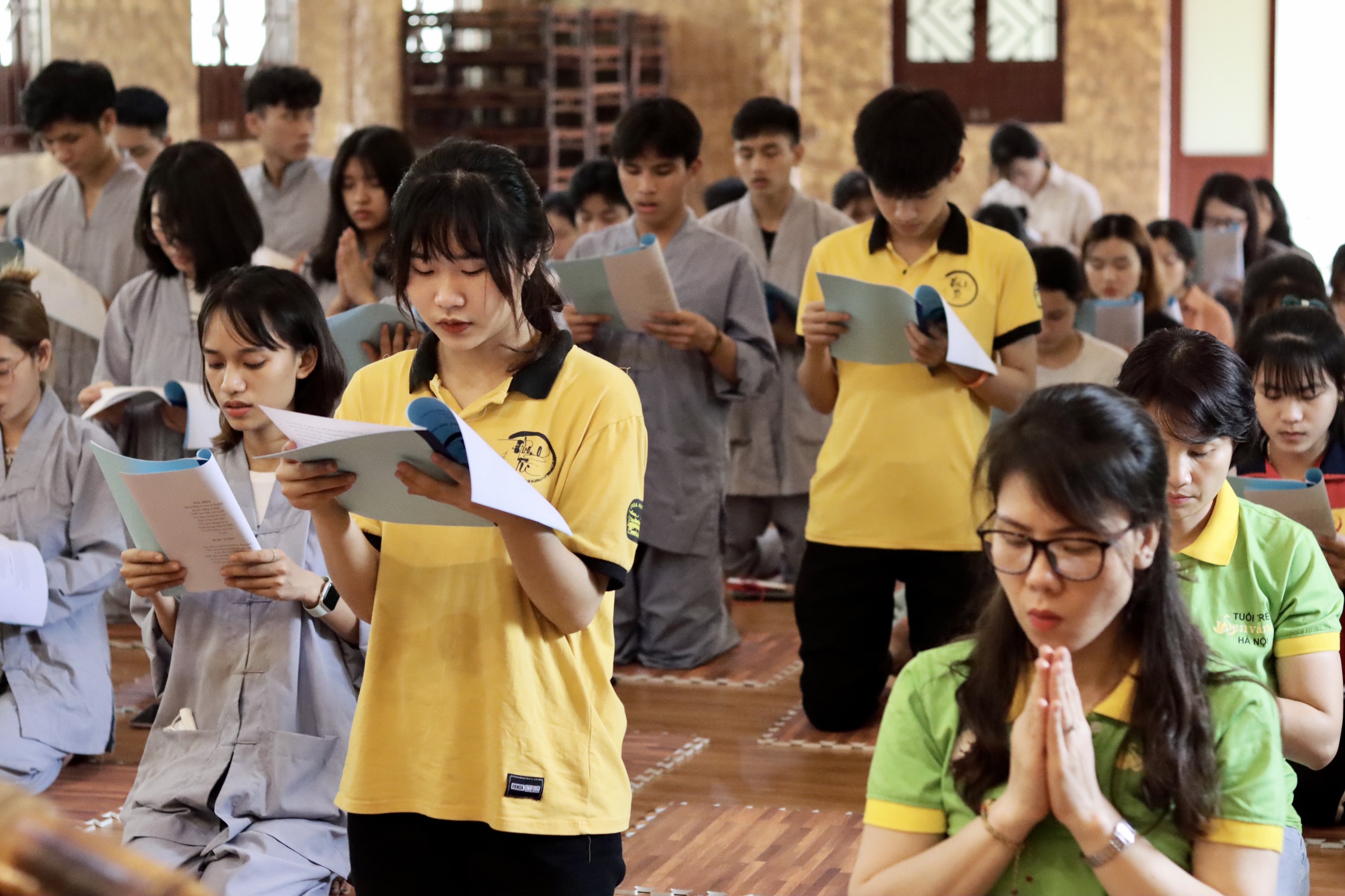 Các bạn trẻ đến từ các CLB khác nhau (GĐTT Sen Vàng Hà Nội; CLB TTNPT Hương Từ chùa Phật Quang; CLB thiện nguyện Đại học Công nghiệp Hà Nam; CLB Chánh kiến thành phố Ninh Bình,…) cùng ngồi chung nơi thiền đường trang nghiêm, được tưới tẩm một nguồn năng lượng mới để cuộc sống mỗi người được bình an hơn, có giá trị hơn.