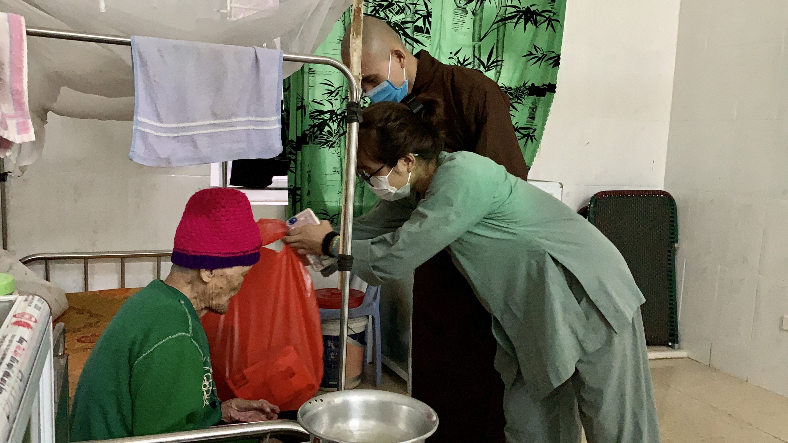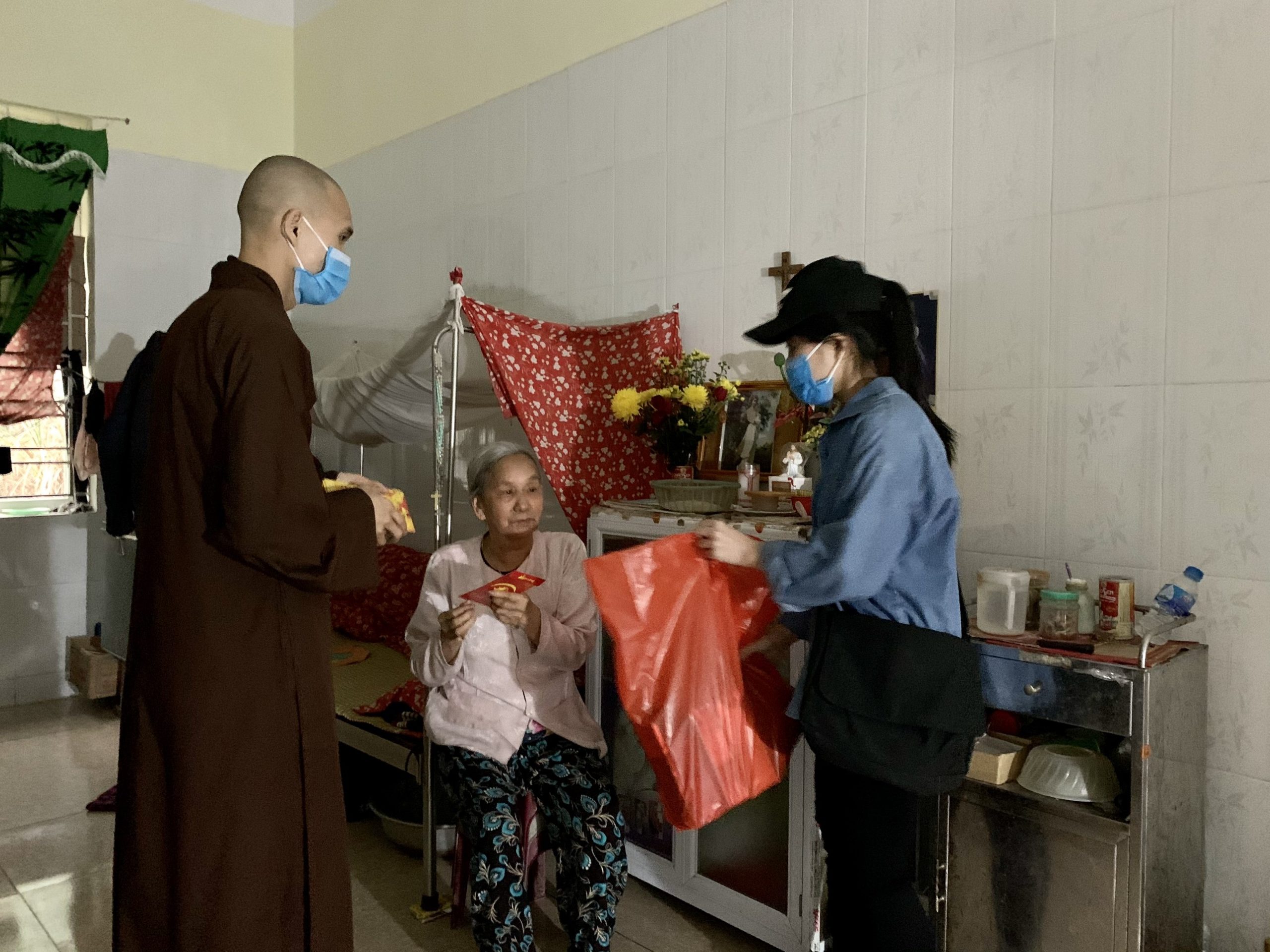 Chia sẻ bằng lời nói, trao tặng cho nhau những nụ cười, niềm hoan hỷ và biết ơn. Ngay sau đó, các bạn trẻ được quý Thầy hướng dẫn đến thăm và tặng quà các bệnh nhân tại trại Phong (Ba Sao, Kim Bảng, Hà Nam). Các bệnh nhân ở đây là những người già yếu mắc bệnh phong, một cuộc sống đầy khó khăn, cơ sở vật chất của bệnh viện còn hạn chế lại nằm sâu trong núi rừng. Một chút yêu thương trao đi không quá nhiều nhưng đã tưới tẩm được hạt mầm yêu thương trong mỗi con người, để thêm để lớn dần qua từng ngày tháng. 54 phần quà bao gồm: bánh, đồ dinh dưỡng, khăn và mũ len, tất ấm và phong bì 200 ngàn đồng được gửi tặng đến các cụ. Một phần quà cho đi, một lời cầu nguyện, một nụ cười san sẻ gửi đến các cụ, mong các cụ luôn được an vui lúc tuổi già.