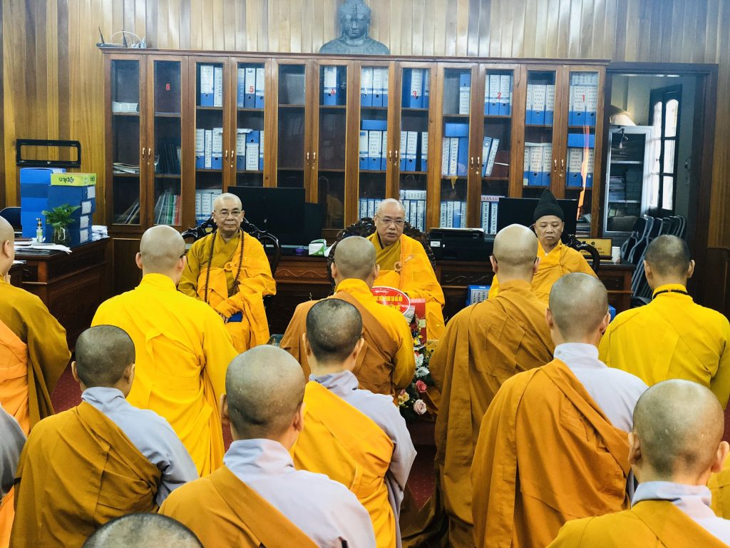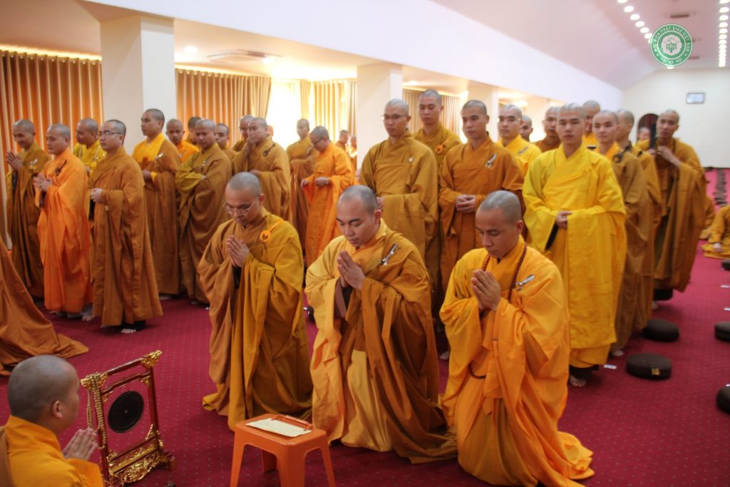 Mở đầu buổi lễ, đại diện Tăng Ni sinh tiêu biểu đã vào cầu thỉnh trên chư Tôn đức và đỉnh lễ, khánh tuế quý ngài nhân dịp kết thúc khóa an cư PL.2564 - DL.2020, kính chúc trên quý ngài “pháp thể khinh an, phúc trí nhị nghiêm, mãi mãi là hàng thạch trụ, bóng cây Bồ đề che trở, dìu dắt cho thế hệ Tăng Ni sinh trẻ trên con đường tiến tu đạo nghiệp, hành trì tu tập đạo giải thoát, giác ngộ của Đức Thế Tôn”.
