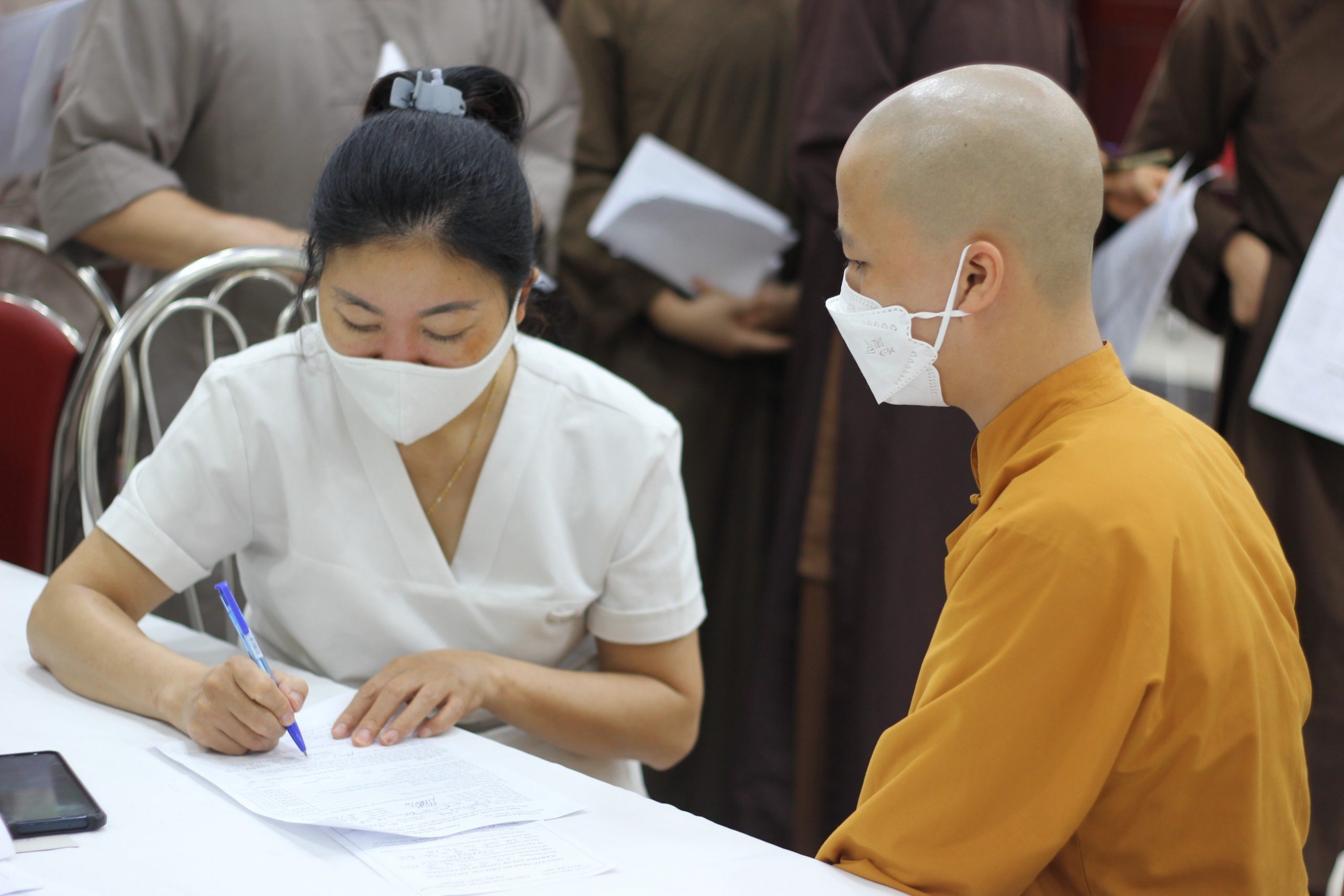 Chư Tôn đức Hội đồng Điều hành, cùng thầy cô Văn phòng và Giáo sư Lương Gia Tĩnh, Phó Viện trưởng đều được tiêm vaccine Pfizer (mũi 4). Tăng Ni sinh toàn Học viện đều tự nguyện tiêm ngừa để nâng cao sức khỏe, phòng ngừa Covid-19.