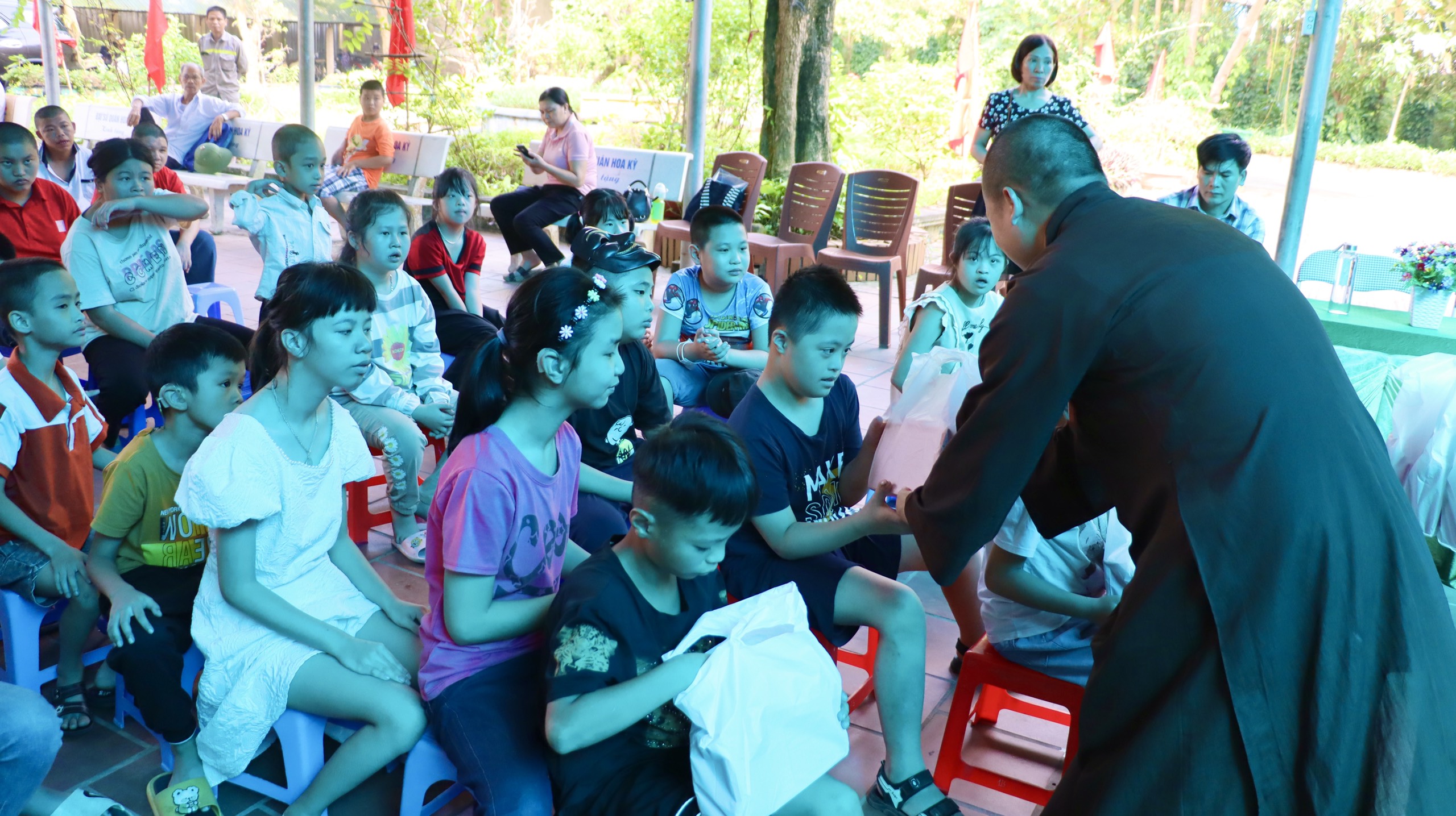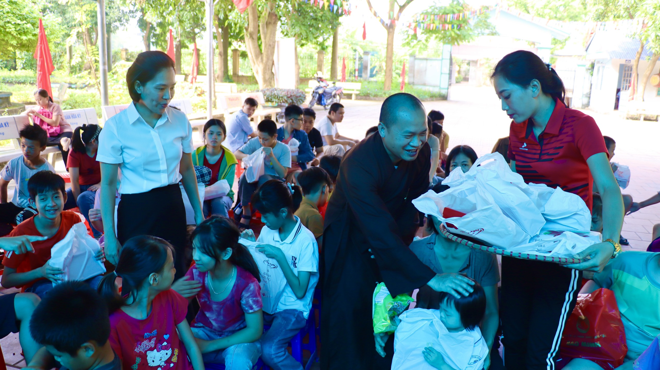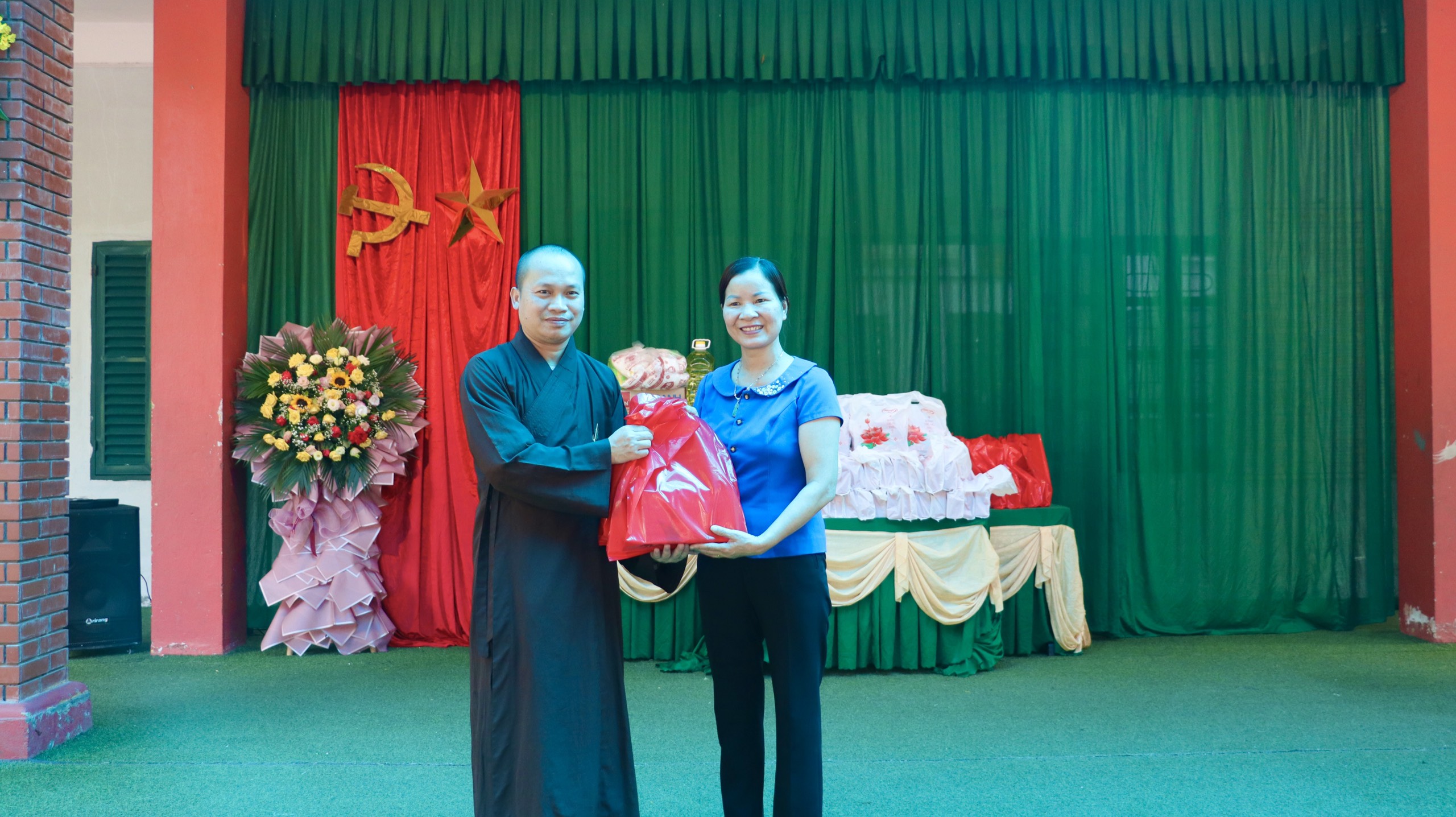 Tại đây, Đại đức đã ân cần thăm hỏi sức khỏe, động viên các cô giáo và các cháu học sinh trong những ngày đầu của năm học mới, gửi lời chúc tới cô và trò nhà trường có một Tết Trung thu vui vẻ, đầm ấm, chúc các cháu chăm ngoan, nghe lời ông bà, bố mẹ và các cô giáo. Đại diện nhà trường đã cảm ơn chư tôn đức Hội đồng Điều hành, Văn phòng Học viện đã luôn quan tâm tới các cháu tại đây trong mỗi dịp lễ, Tết.